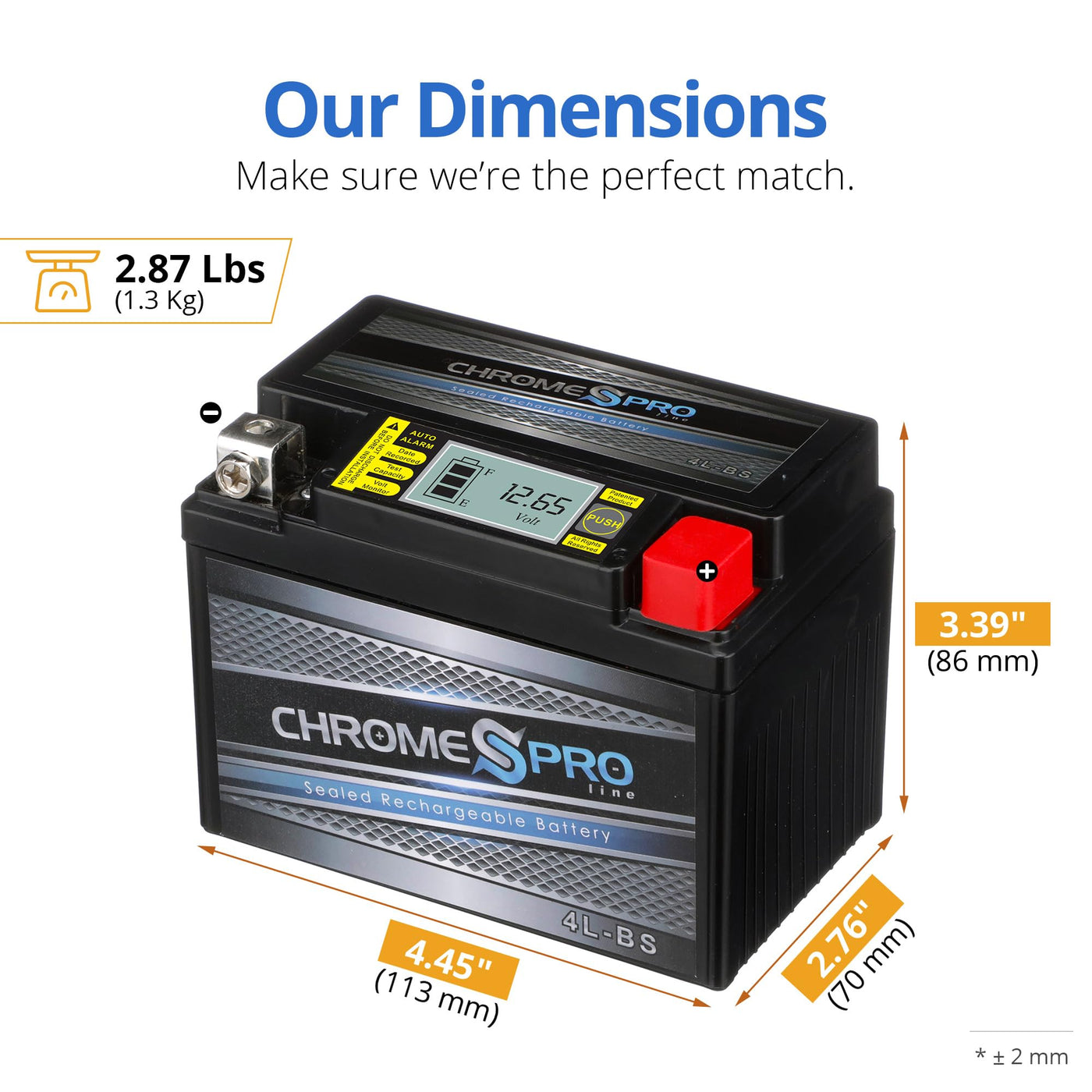 Chrome Pro Igel Ytx4L-Bs Maintenance-Free, Lcd Display, 50Cca, 12V 4Ah Battery Replacement For Atv, Motorcycle, Jet Skis, Scoote