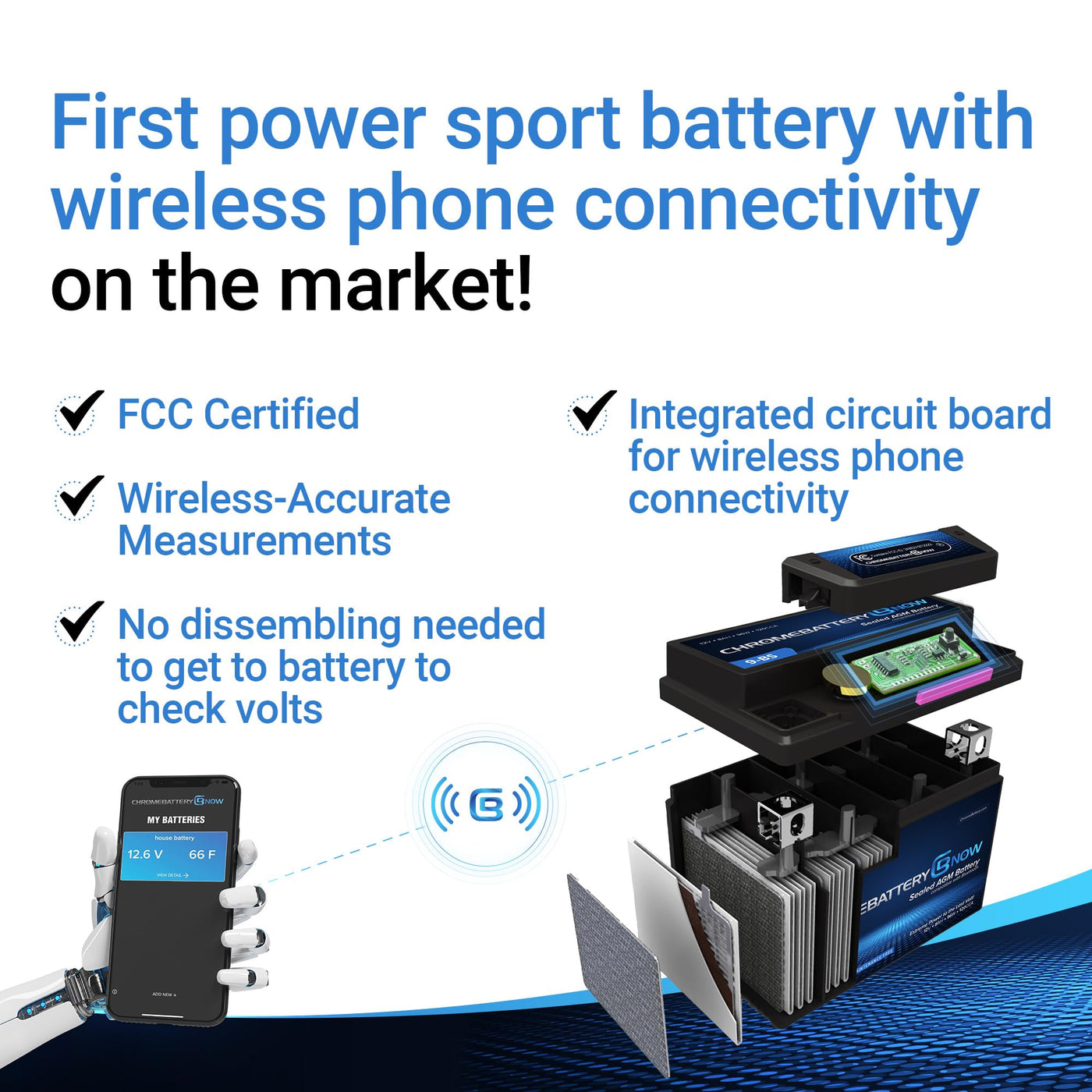The YTX12-BS ChromeNow battery is the cutting-edge solution for motorcycles, ATVs, UTVs, jet skis, snowmobiles, scooters, dirt bikes, and more. Equipped with Bluetooth connectivity, this YTX12 BS battery lets you monitor performance, voltage, and temperature in real-time using the ChromeNow app on Apple or Android devices - eliminating the need for physical checks or dismantling. Designed with AGM technology and gel electrolytes, the 12 BS battery offers maintenance-free, spill-proof reliability and is built to withstand extreme conditions with superior vibration resistance. Fully charged and ready to install, the 12-BS battery fits a wide range of OEM applications, ensuring dependable power when you need it most. Experience the future of powersport batteries with ChromeNow, the trusted choice for durability, performance, and smart technology.