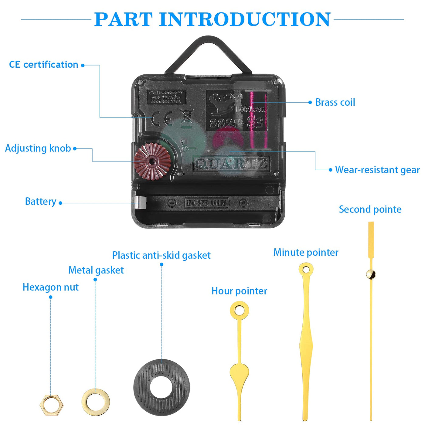 Q: What materials are used in the DOITOOL clock movement?A: The DOITOOL clock movement is made from high-quality metal, ensuring durability and a solid construction that enhances the longevity of your clock.