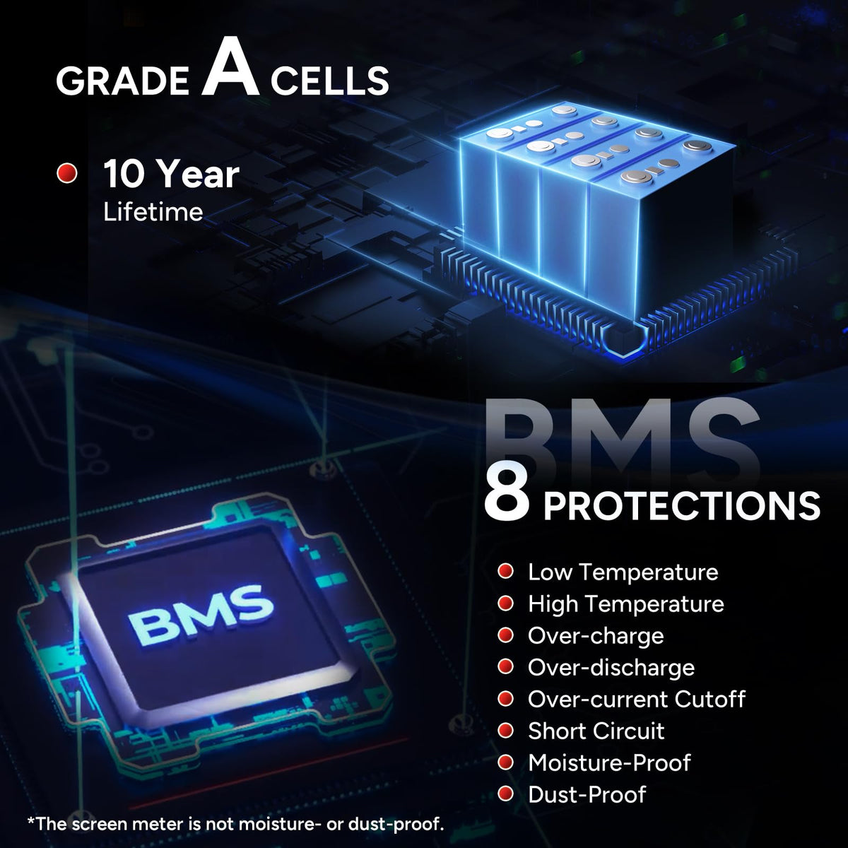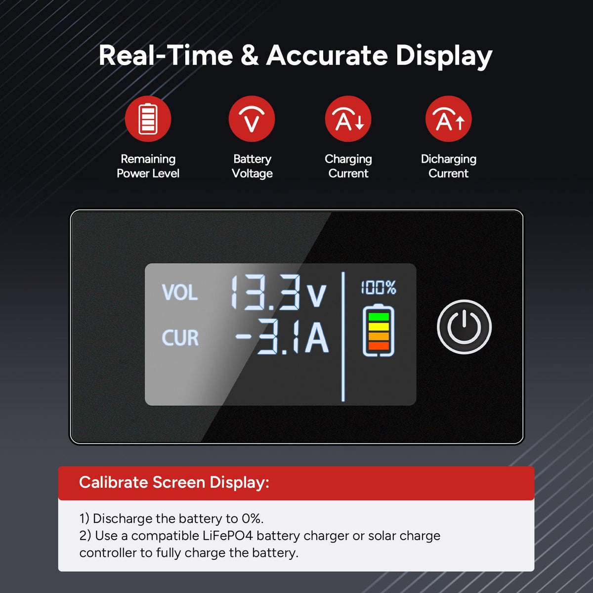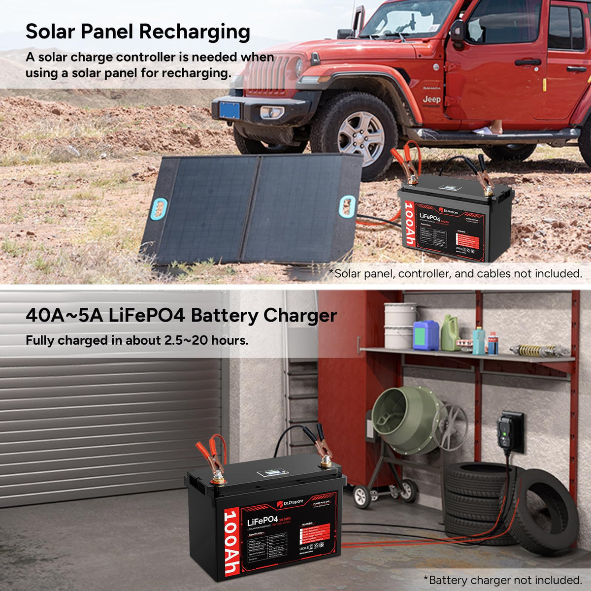 Dr.Prepare Dr. Prepare 12V 100Ah Lifepo4 Deep Cycle Battery,Rechargeable Lithium Iron Phosphate Battery With Monitor Screen,Buil