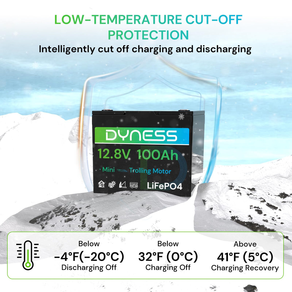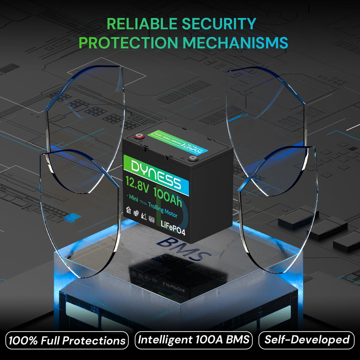 Dyness 12V 100Ah Mini LiFePO4 Battery BCI Group 24, 12 Volt Deep Cycle Lithium Battery with 100A BMS, Low-Temp Protection & 10 Years Lifespan for RV, Boat, Trolling Motor, Solar Off-Grid, Golf Cart ?Compact & Lightweight Design?Dyness 12V 100Ah LiFePO4 battery mini Group 24 size : (L10.2*W6.6*H8.2 Inch), offering a smaller footprint of space(only 0.25ft)35% smaller than traditional batteries, making it easier to install and transport without compromising power. ?Premium A+ Grade LiFePO4 Cells?Dyness 12V 100Ah lithium battery made with high quality grade A+ LiFePO4 battery cells that have up to 10-year lifespan, delivers superior energy density, ensuring longer runtime and reliable performance for your applications. ?Low-Temperature Protection? Designed to operate efficiently even in cold environments, Dyness battery features low-temperature protection, ensuring reliable performance in various weather conditions. Automatically disconnects from charging when the cell temperature drops below 32F (0C). The discharging cut-off temperature is -4F (-20C), and charging resumes at 41F (5C). ?Advanced BMS Protection?Equipped with a built-in Battery Management System (BMS), Against overcharging, over-discharging, over-current, overheating, and short circuits, as well as Dustproof, IP65 Waterproof, Salt spray proof. Additional upgraded low-temperature power-off function to ensure safe use in low-temperature environments. Designed for harsh environments such as rainy or marine, or dusty and wet conditions. ?Up to 6000+ Deep Cycles?Engineered for durability, Dyness 12 volt lithium battery supports over 4000+ Cycles at 100% DOD, 6000+ at 80% DoD, 15000+ Cycles at 60% DOD, providing a lifespan of up to 10 years and significantly reducing long-term costs. ?Wide Application Range?Perfect for Trolling motors, RVs, boats,, home energy storage, solar off-grid systems, and small golf carts. Its versatility makes it an ideal power solution for both outdoor adventures and everyday use. ?After-Sales Service?Dyness provide professional technical support and online customer service with fast response within 24 hours. If you have any product-related issues or questions, don't hesitate to contact us directly, the Dyness support team is always here for you.