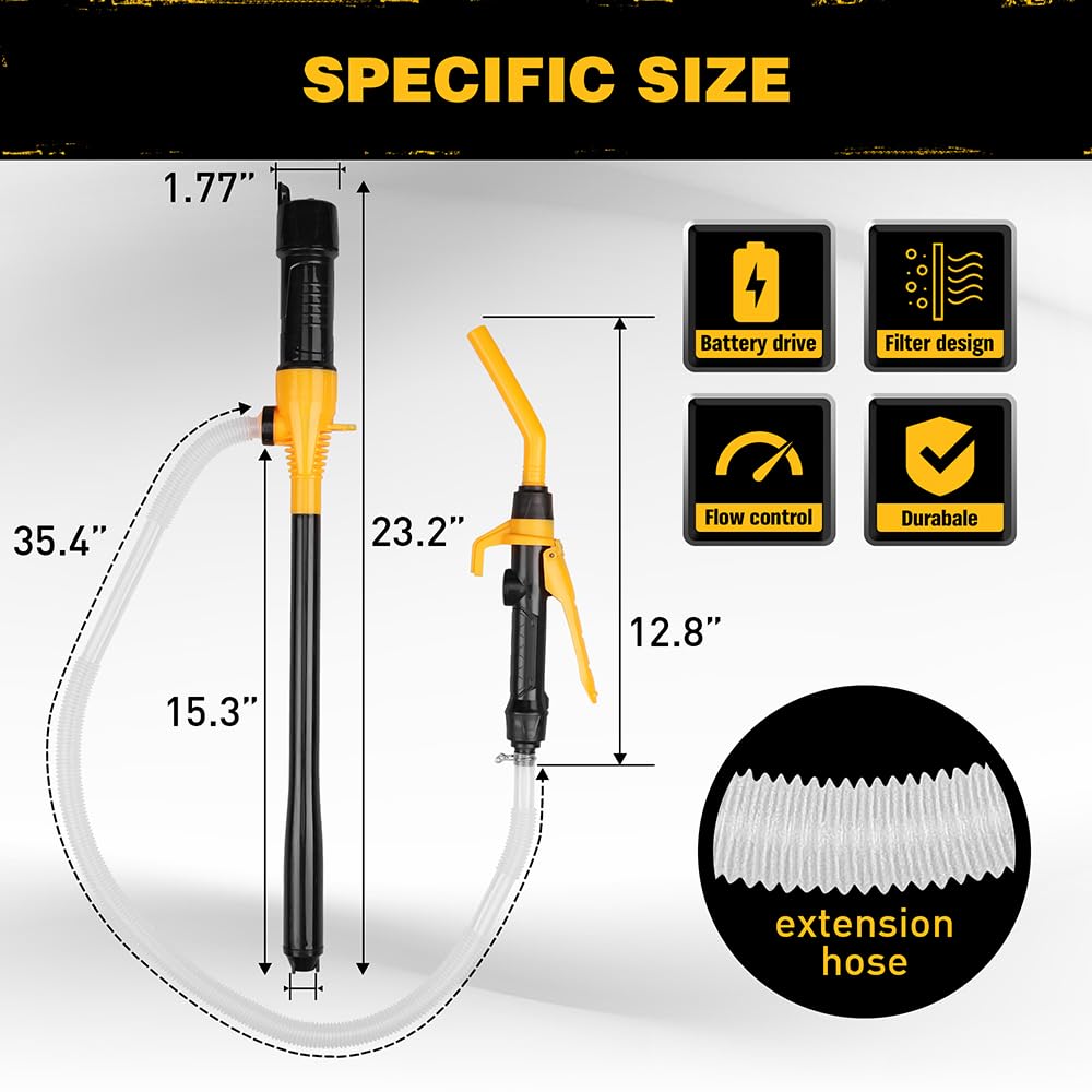 Experience seamless liquid transfers with our Portable Power Battery Pump, designed for utmost efficiency and convenience. This upgraded model features a flow control nozzle for customized flow rates and a filter to block impurities. Safe and easy to use, it operates with either 6AA or 2D batteries and pumps at a swift rate of 2.2 gallons per minute. Lightweight and portable, it's perfect for various environments - be it your garage, boat, or basement. Choose our pump for an optimal, hassle-free fluid transfer solution.