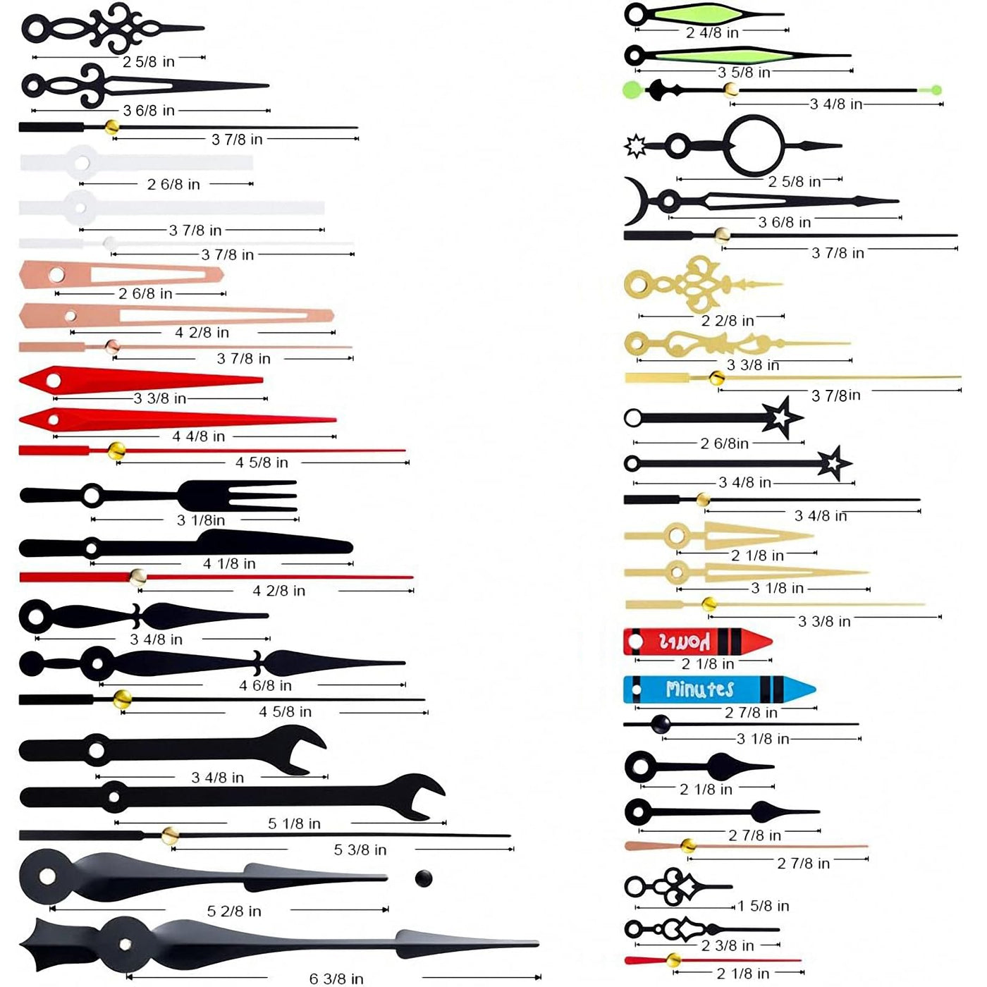 Q: Are the clock hands included in the kit suitable for different clock sizes?A: Yes, the kit includes a diverse selection of 16 clock hands that are suitable for clock faces ranging from 2 to 16 inches in diameter, allowing for customization of your timepiece.