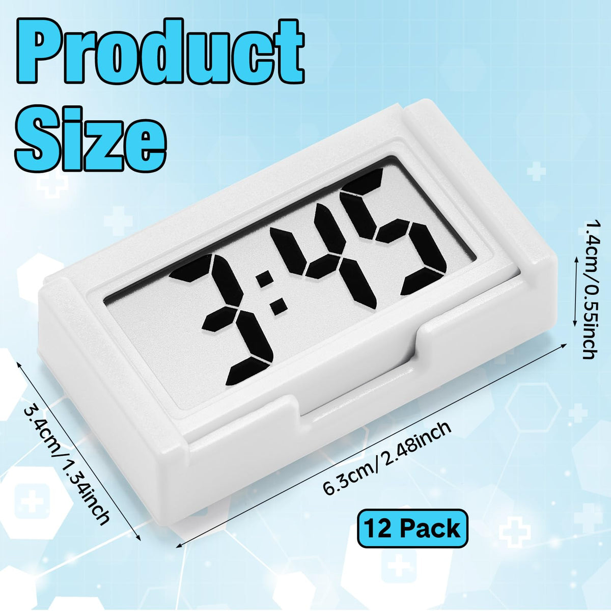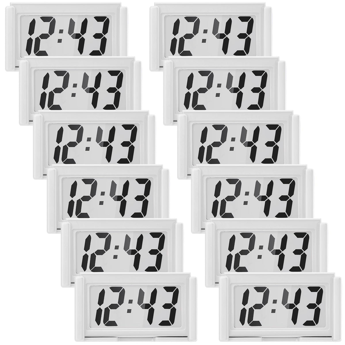 Frienda 12 Pieces Mini Digital Clock Small Magnetic Digital Clock Stick on Battery Operated Self Adhesive Bracket for Car Dashbo
