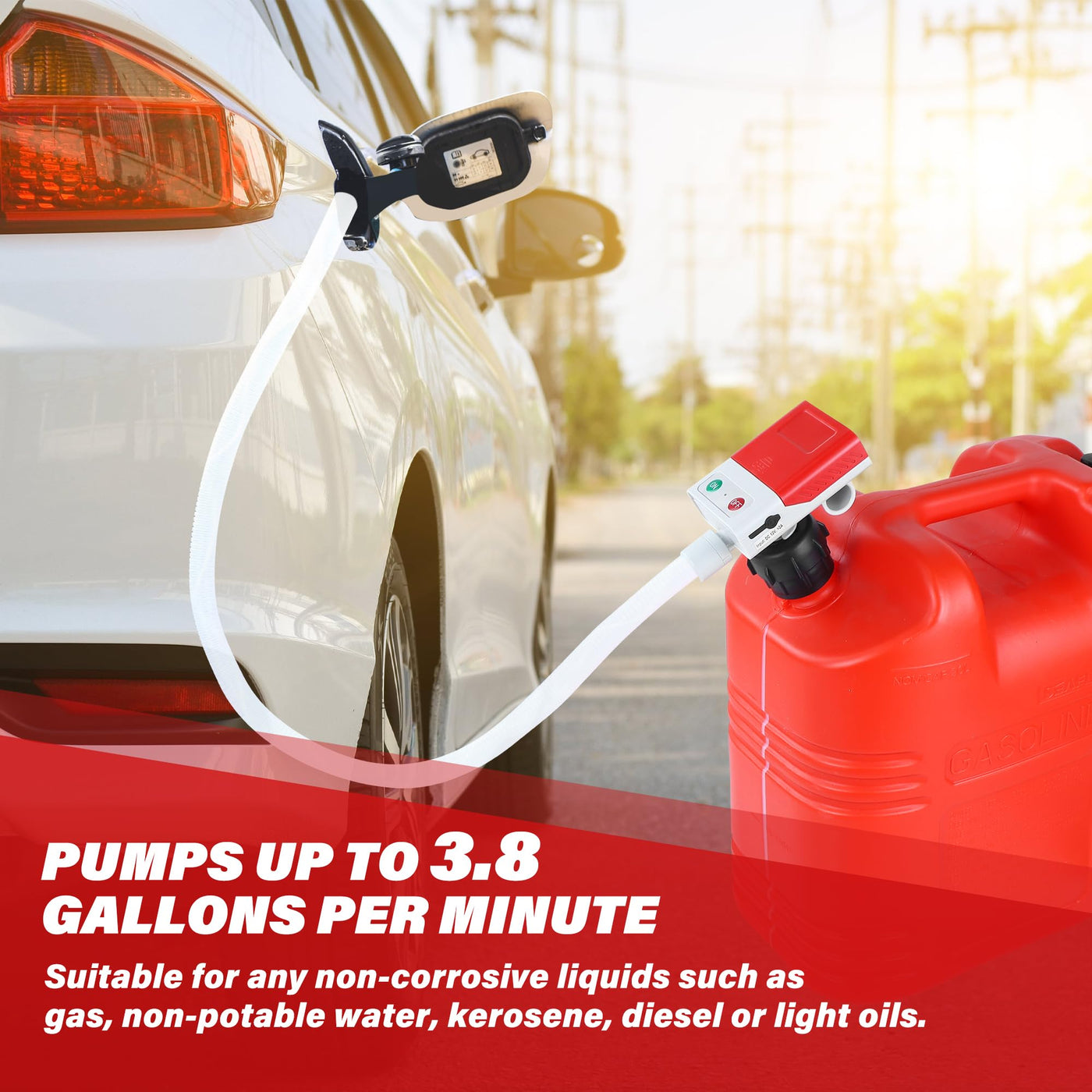 Fuel Transfer Pump, 3.8 Gpm, Auto-Stop Nozzle, 51-Inch Hose With 3 Tank Fittings, Battery-Powered Portable Siphon Pump For Oil,