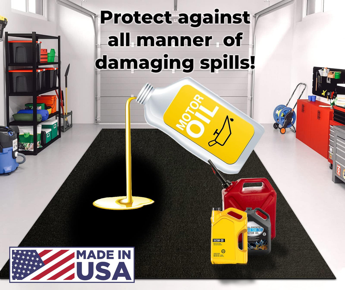 [ADVANCED MATERIALS] - Built with high-tech microfiber and impermeable membrane to block oil, coolant, battery acid, and more-nothing leaks through this golf cart garage floor mat! | [STOP THE MESS] - Say goodbye to stains! This garage mat for golf carts traps oil, gasoline, and grime to keep your garage or shop floor clean and mess-free. | [CUSTOM FIT INSTALL] - Just clean the surface and roll it out-cut to size for perfect fit under any golf cart or Yamaha G29! Wrinkles settle over time for a smooth finish. Add To Cart | [UNIVERSAL VEHICLE USE] - Ideal garage floor mat for golf carts, motorcycles, ATVs, or cars-works great with Club Car, EZGO, and Yamaha golf cart floor mat setups. | [MULTI-PURPOSE COVERAGE] - Use under trash bins, lawn tools, or appliances-this floor protector does it all. American-made for quality that lasts! | [EASY TO CLEAN] - Vacuum it like a carpet or spray it clean with a hose-this durable garage mat keeps your space low maintenance and spotless. | [VERSATILE SIZE] - Large 5x8 ft coverage with cut-to-fit design-perfect as a golf cart mat for garage floors, or floor protector for home and shop use.