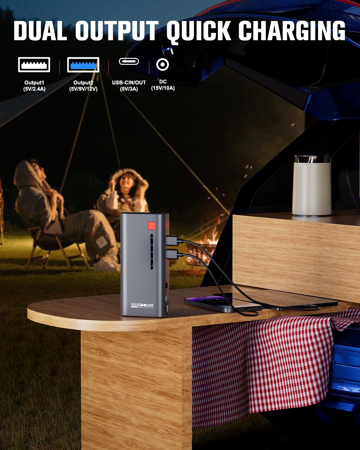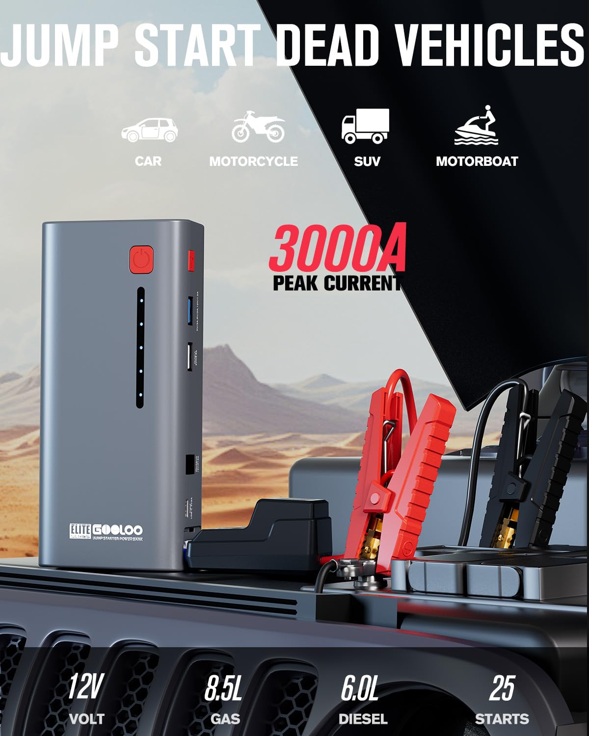 Gooloo Jump Starter Battery Pack 3000A Peak Supersafe Car Starter (Up To 8.5L Gas Or 6.0L Diesel Engine) With Usb Quick Charge A