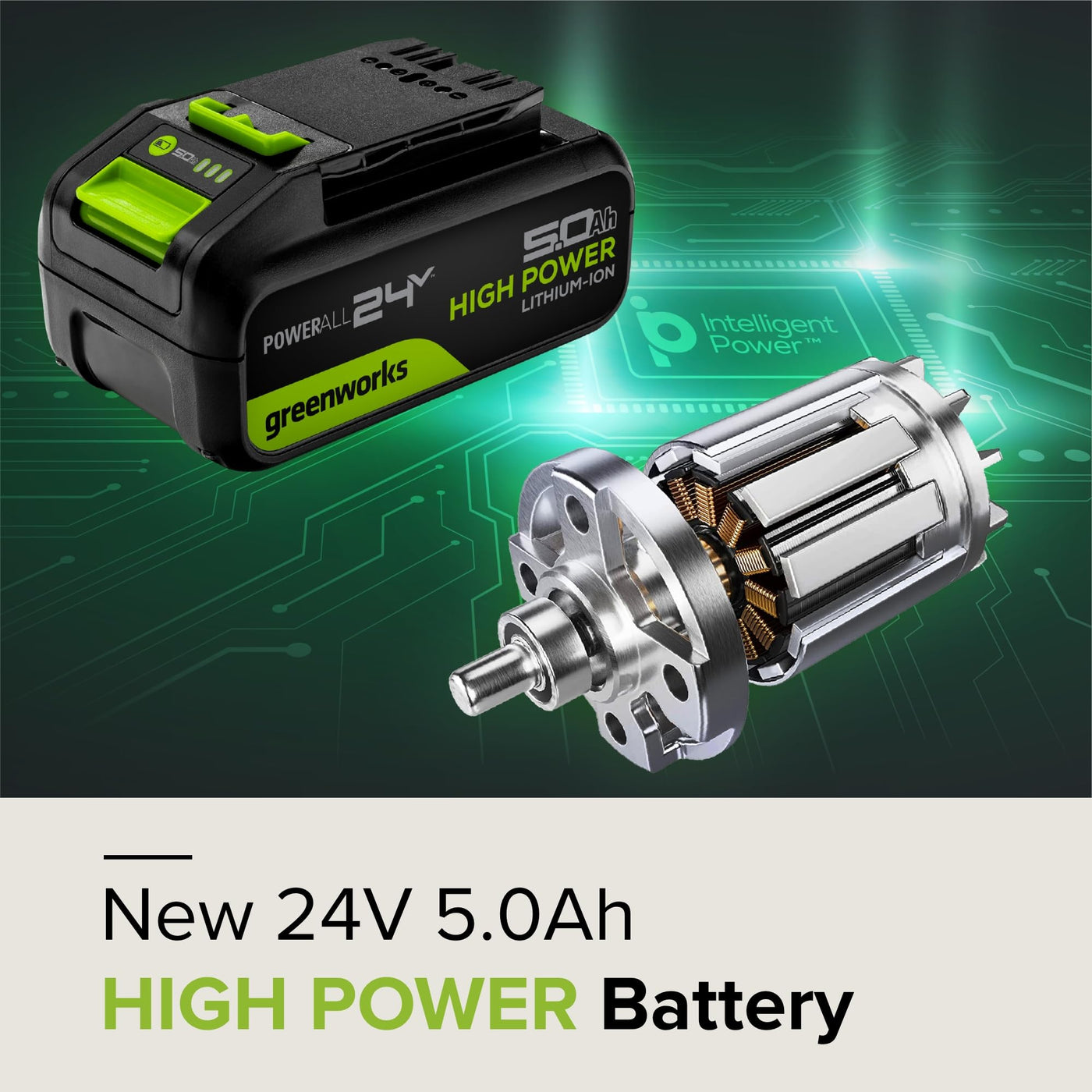 Greenworks 24V 5.0Ah Lithium-Ion High-Power Battery, Upgraded With 35% Power Boost (Genuine Battery/ 150+ Compatible Tools)