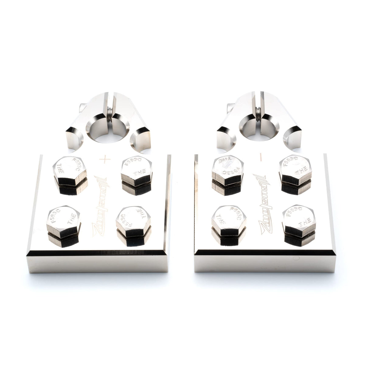? Up to 8 studs, suitable for a variety of cable lugs, from 8AWG to 4/0(XL)? For Battery Type: Lead Acid Battery (AGM, GEL, WET, MF and CA/CA)? For Battery Post Type: SAE/Top Post? Made From High Conductivity 6061 Aluminum Plated in Nickel For Added Corrosion Resistance? Includes Stainless Steel Hardware/Bolts? 3/8'' Mounting Hole? 3/8'' Bolts