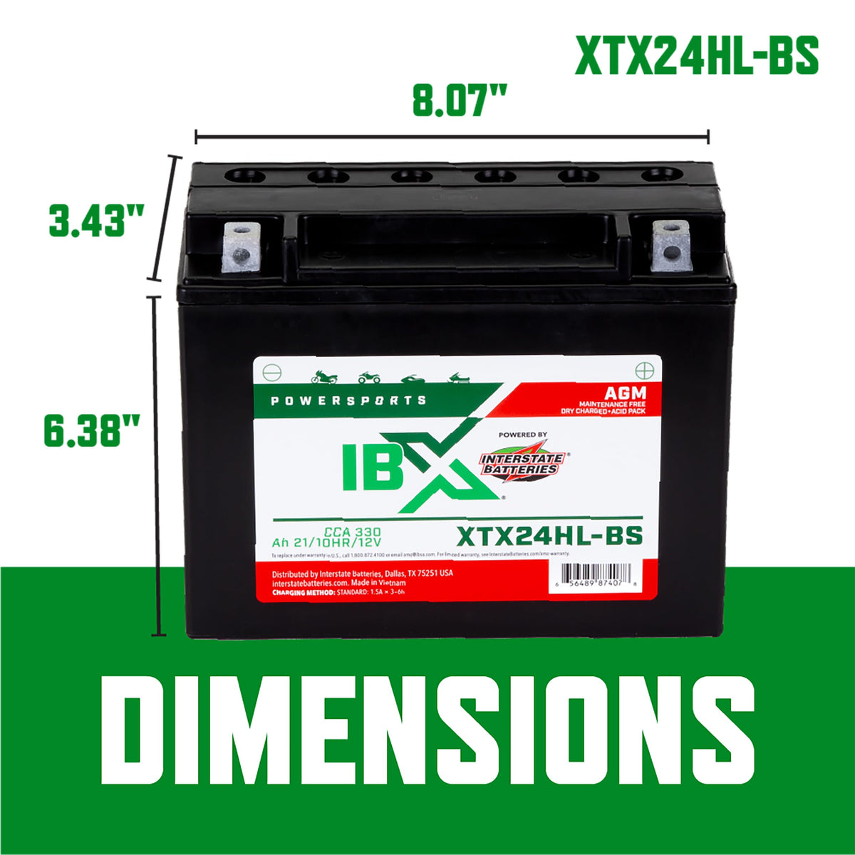 Interstate Batteries Ytx24Hl-Bs 12V 21Ah Powersports Battery 330Cca Agm Rechargeable Replacement Battery For Arctic Cat, Brp, Ya