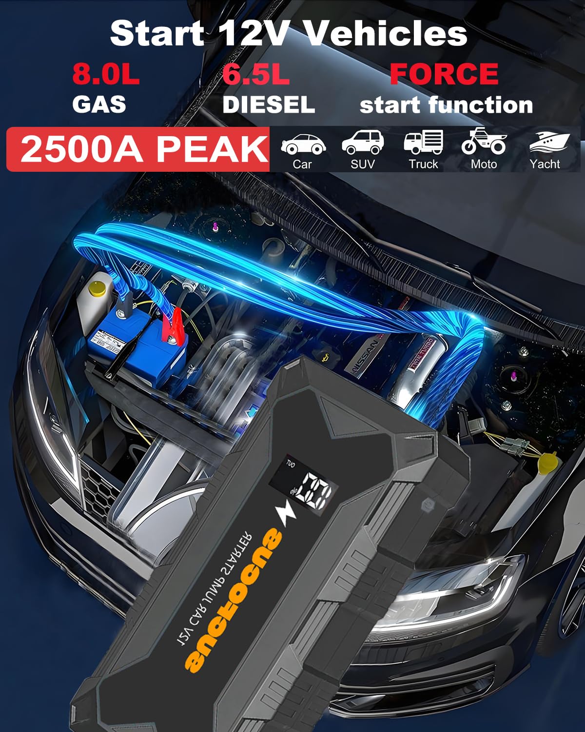 Jump Starter, 2500A Battery Jumper Starter Portable (For 8.0L Gas Or 6.5L Diesel Engine), Car Battery Jump Starter, Jump Box, Ju