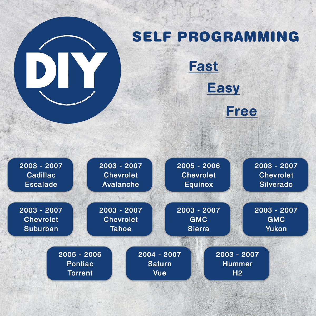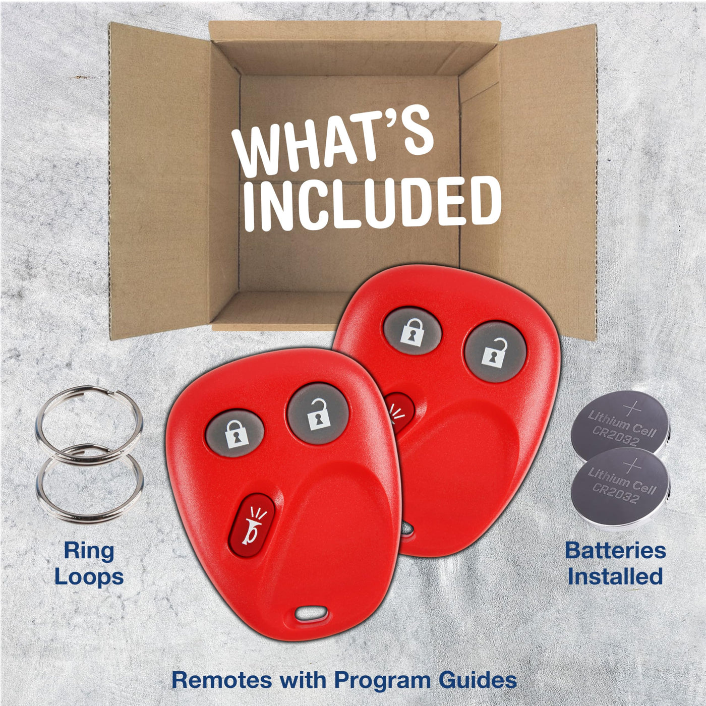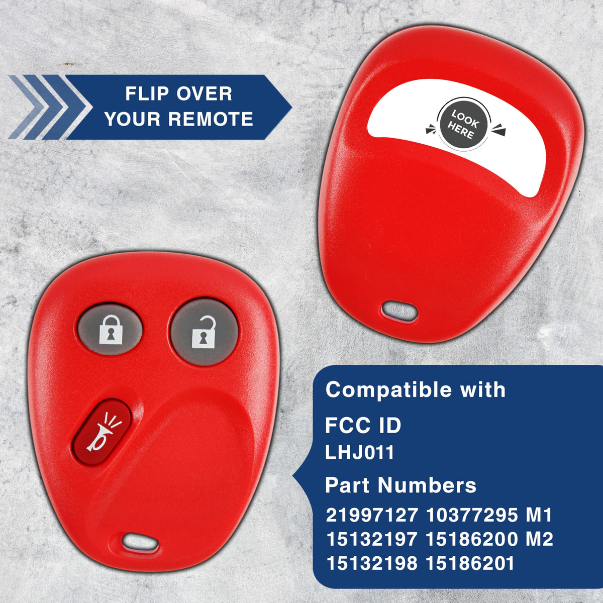 Self-Programming: This 3-button key fob replacement is designed for easy, self-programming, making it an ideal DIY solution. You wont need professional assistance to set it up-just follow the simple instructions provided. In just a few easy steps, you can program the fob to your vehicle, restoring full functionality without costly visits to the dealership. Its a quick, cost-effective way to replace a lost or damaged key fob while maintaining convenience and security. Vehicle Compatibility: This car remote can only be programmed for specific Cadillac, Chevrolet, GMC, and Hummer models. This includes the 2003, 2004, 2005, 2006, 2007 Cadillac Escalade, 2003, 2004, 2005, 2006, 2007 Chevrolet Avalanche, 2003, 2004, 2005, 2006, 2007 Chevrolet Silverado, 2003, 2004, 2005, 2006, 2007 Chevrolet Suburban, 2003, 2004, 2005, 2006, 2007 Chevrolet Tahoe, 2003, 2004, 2005, 2006, 2007 GMC Sierra, 2003, 2004, 2005, 2006, 2007 GMC Yukon, and the 2003, 2004, 2005, 2006, 2007 Hummer H2. Premium Replacement: This car fob serves as a premium replacement for the original OEM part numbers LHJ011, 15186200, 15186201, 15132197, 15132198, 10377295, 22730827, 15186203, & 21997127- FCC ID: LHJ011. Designed to match the specifications of the factory remote. This premium replacement ensures a seamless integration with your cars security system, maintaining the same high-quality performance while offering an affordable and convenient option for replacing a lost or damaged remote. Feature Rich 3-Button Fob: This Keyless Options replacement remote features three convenient button options, providing a range of functions for added security and ease of use. The lock and unlock buttons offer quick access to secure or open your vehicle. Additionally, the panic button ensures safety by triggering an alarm in case of an emergency, offering peace of mind.