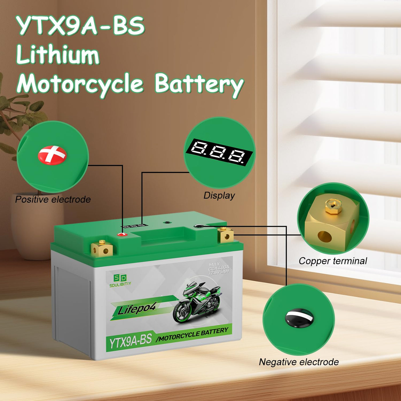 Lithium Motorcycle Battery, YTX9A-BS 12V5AH High Performance Power Sports, Compatible ATV, UTV, PWC, Seadoo, Polaris and Generat