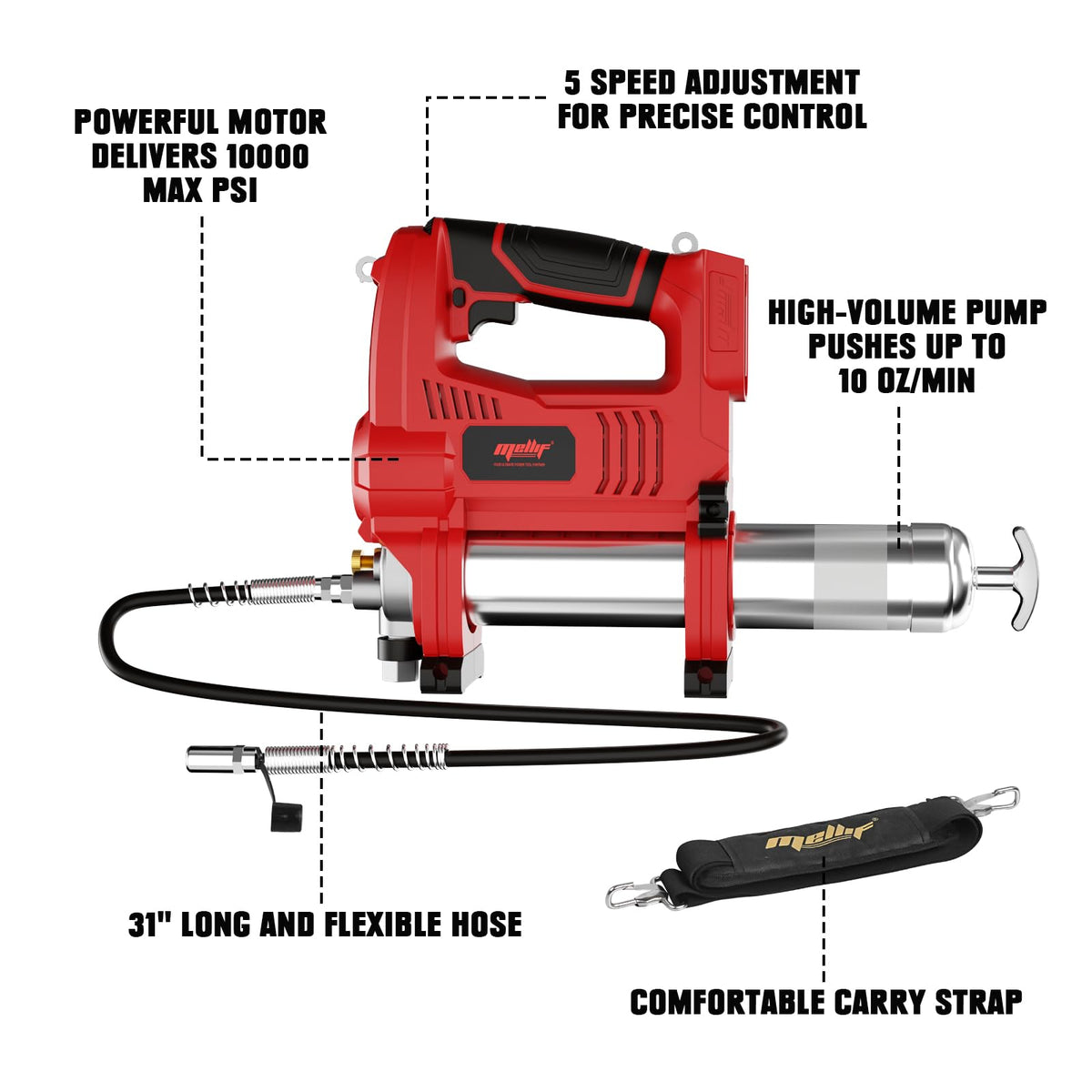 Mellif Power Grease Gun Compatible with Milwaukee 18V Battery (Tool ONLY), 10,000 PSI, Brushless Motor, 5 Variable Speed, 14 OZ