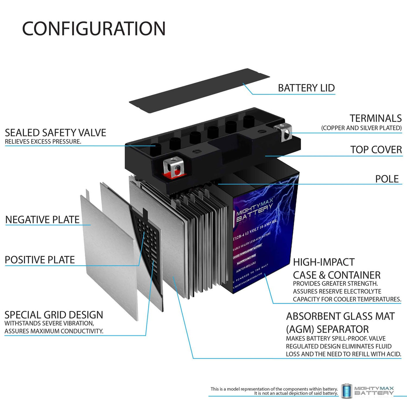 Mighty Max Battery Yt12B-4-12 Volt 10 Ah, 125 Cca, Rechargeable Maintenance Free Sla Agm Motorcycle Battery