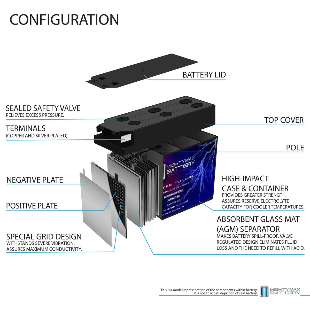 Mighty Max Battery Yt4B-Bs - 12 Volt 2.3 Ah, 25 Cca, Rechargeable Maintenance Free Sla Agm Motorcycle Battery