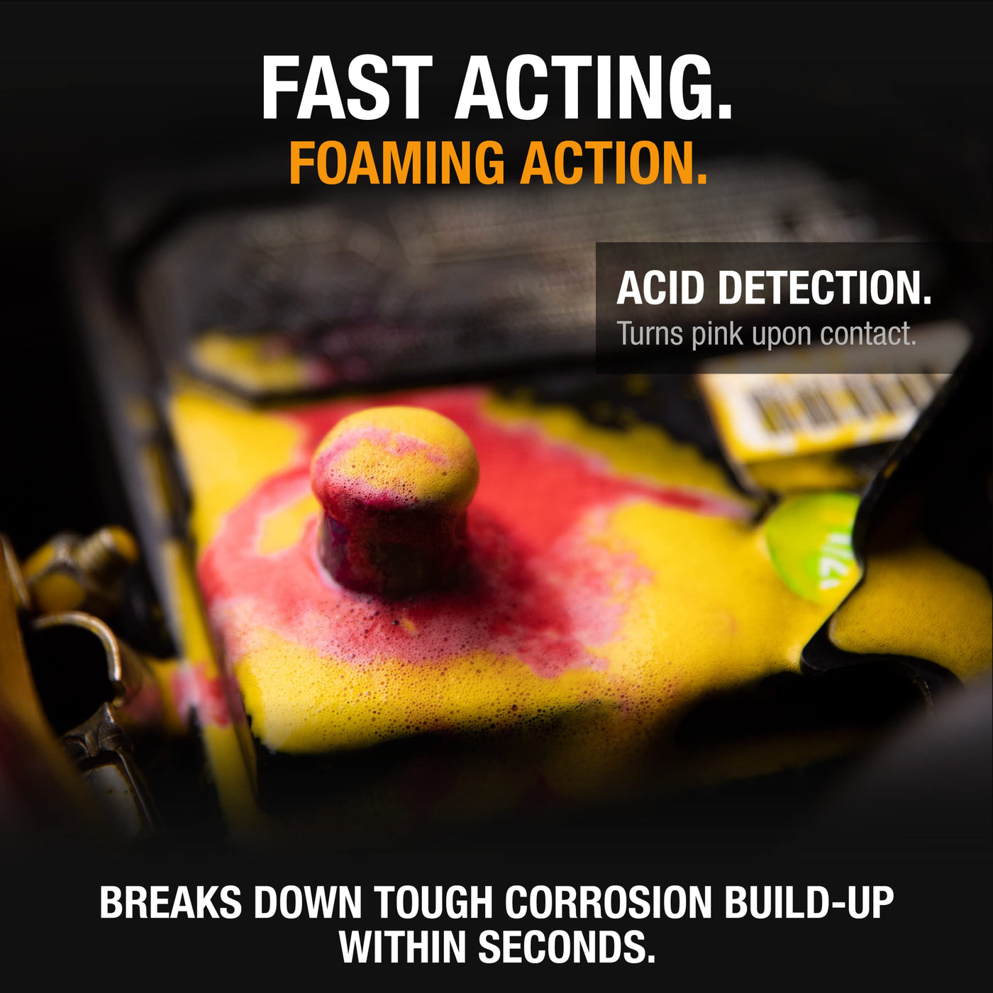 The E404 Battery Terminal Cleaner Spray and Corrosion Cleaner with Acid Detector features a specialized foaming agent that turns pink upon contact with battery corrosion. It instantly neutralizes, dissolves, and removes all battery corrosion types from battery terminals, battery cables, and more. It's formulated to improve electrical connections and current flow for increased cranking ability of your vehicle. Comes packaged in a 12.25-ounce aerosol can.