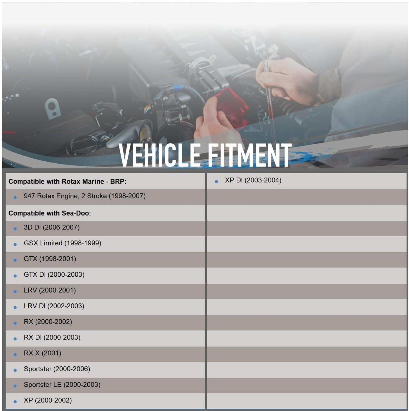 SPECIFICATIONS: 12 Volt, CW, 9-Spline Shaft UNIT TYPE: PMDD DESIGN: PMDD VOLTAGE: 12 ROTATION: CW NUMBER OF TEETH: 9 FEATURE 2: 9-Spline Shaft This list is a sample of all the compatible cars for this part. Make sure this product fits your car by using the part finder above. COMPATIBLE WITH ROTAX MARINE - BRP: 947 Rotax Engine, 2 Stroke (98-07) COMPATIBLE WITH SEA-DOO: 3D DI (06-07) GSX Limited (98-99) GTX (98-01) GTX DI (00-03) LRV (00-01) LRV DI (02-03) RX (00-02) RX DI (00-03) RX X (01-01) Sportster (00-06) Sportster LE (00-03) XP (00-02) XP DI (03-04)