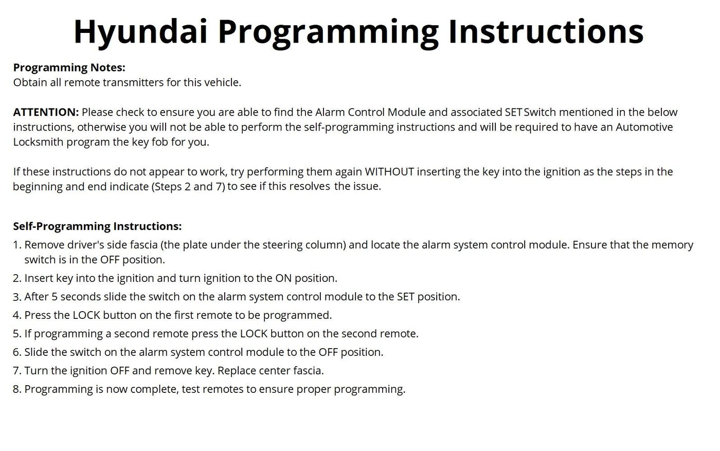 OEM Electronic Keyless Entry Key Fob Remote, FCC ID: OSLOKA-221T OSLOKA-2201T and Part Number(s): 95411-26200 95411-26201 95411-26202. Each remote contains an OEM Electronic circuit board in a replacement case. Battery is installed and ready to be programmed to your vehicle upon arrival. 3-Button - Lock, Unlock and Panic. Leather strap and key ring are included. Self programming instructions provided with your purchase. No special tools required. Match an existing remote to the FCC ID & Part Number or call a local automotive parts center with your VIN and compare to the part number provided in the listing. Compatible with the following vehicles: 2003 2004 2005 2006 Santa Fe