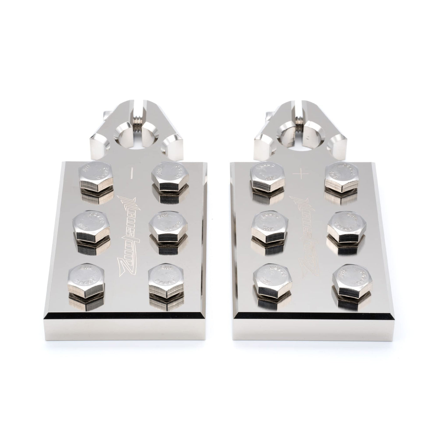 ? Up to 12 studs, suitable for a variety of cable lugs, from 8AWG to 4/0(XL)? For Battery Type: Lead Acid Battery (AGM, GEL, WET, MF and CA/CA)? For Battery Post Type: SAE/Top Post? Made From High Conductivity 6061 Aluminum Plated in Nickel For Added Corrosion Resistance? Includes Stainless Steel Hardware/Bolts? 3/8'' Mounting Hole? 3/8'' Bolts
