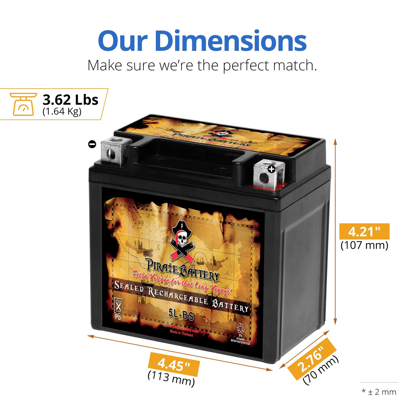 Pirate Battery Ytx5L-Bs Maintenance Free Replacement Battery Compatible With Atv, Motorcycle, And Scooter: 12 Volts, 5 Amps, 4Ah