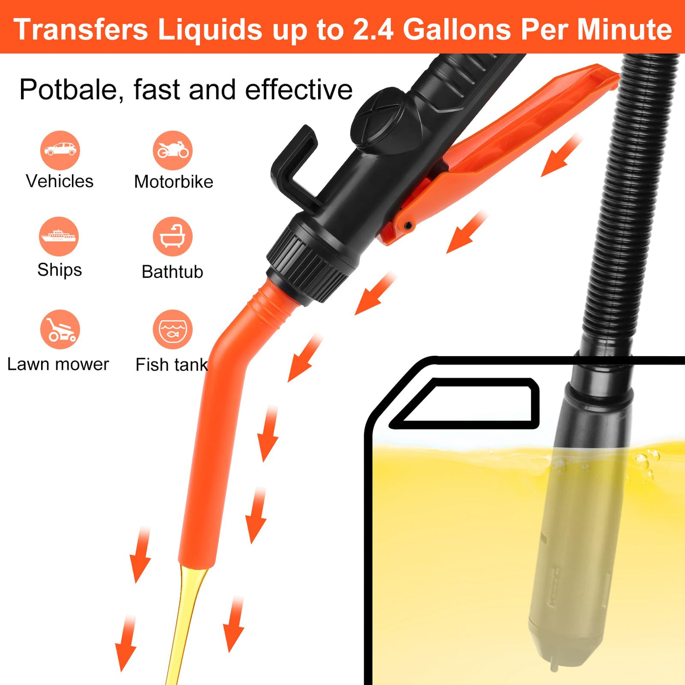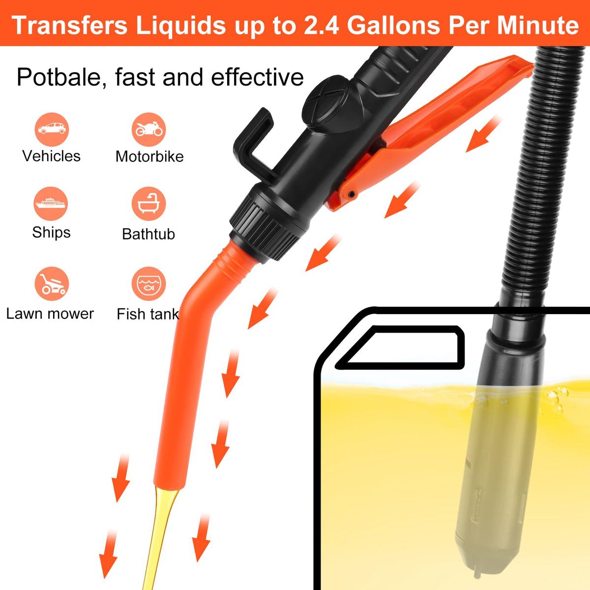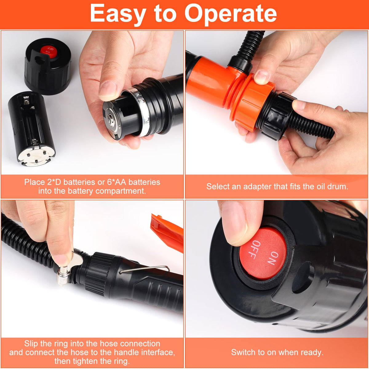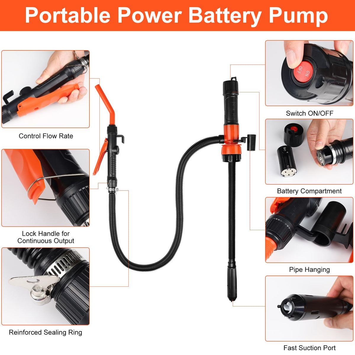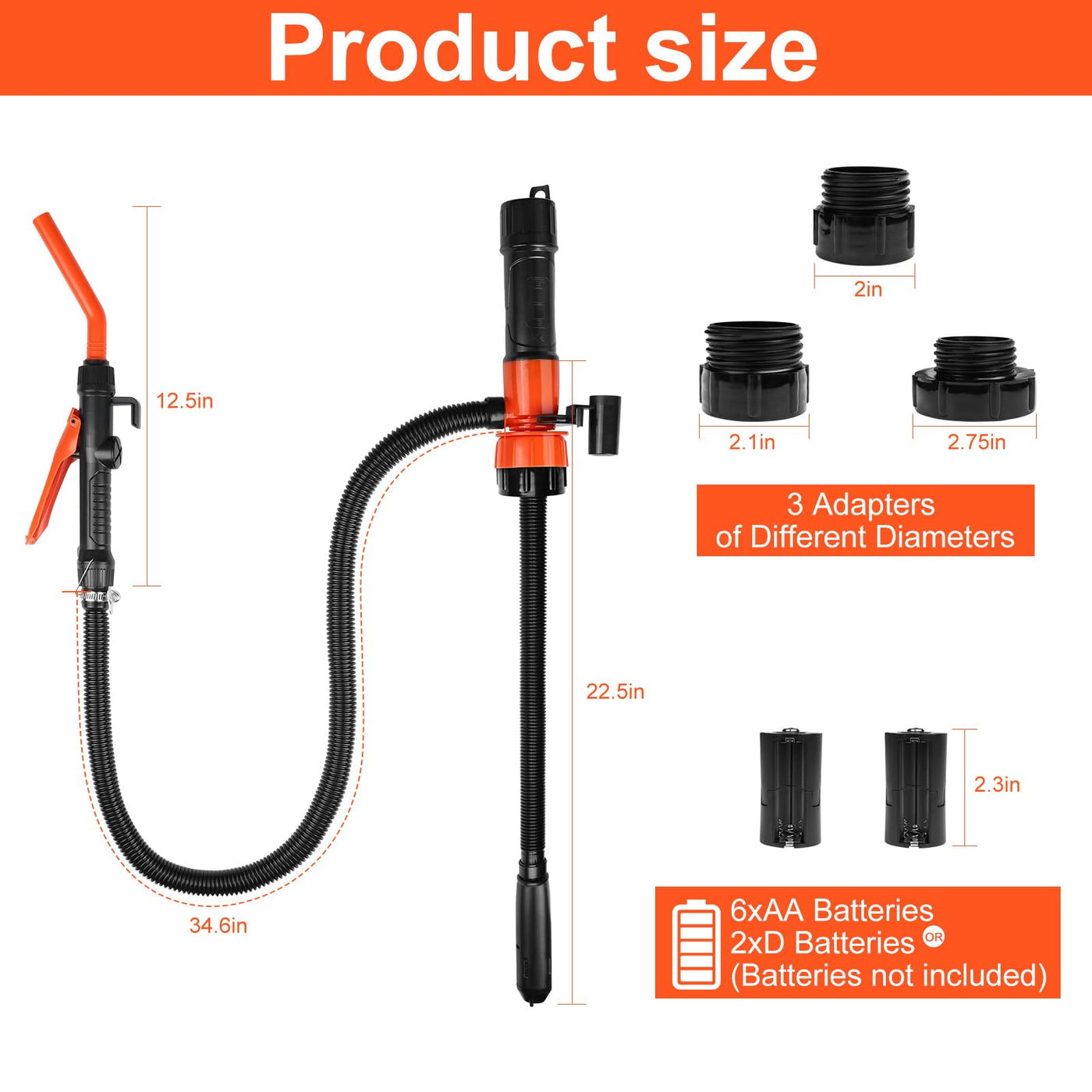 Portable Power Battery Transfer Pump, Fuel Transfer Pump Battery Powered with 3 Adapters, Gas Siphon Pump for Gasoline, Effortle