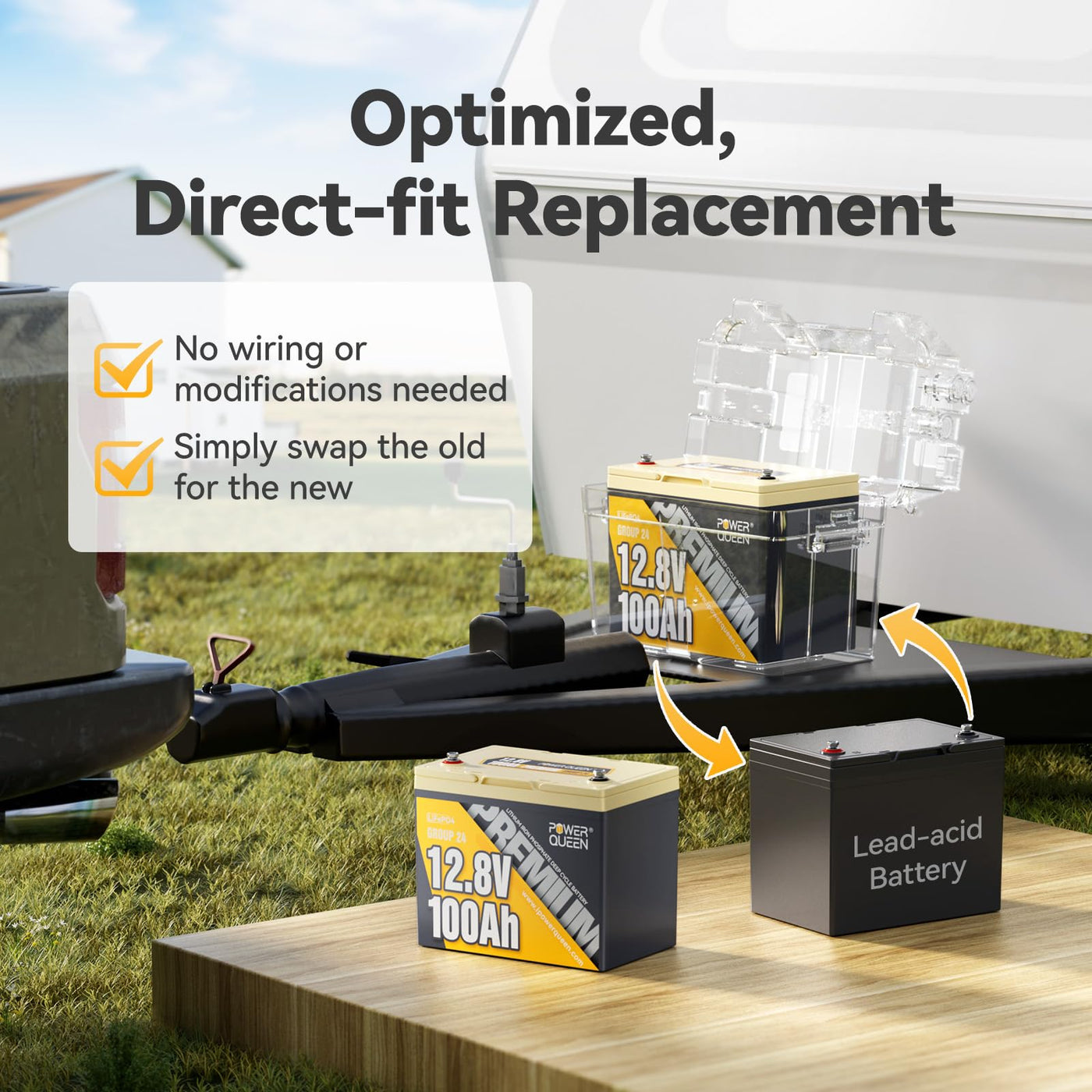 Power Queen 12V 100Ah Premium LiFePO4 Battery Fits Group 24 Battery Box, 1280Wh Lithium Battery with 100A BMS, Perfect for Trailer RV, Marine, Solar Power System