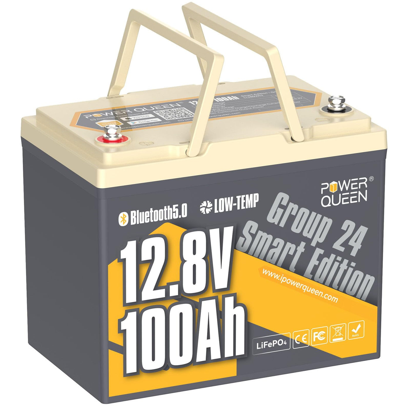 Power Queen Bluetooth 12V 100Ah LiFePO4 Battery, Group 24 Deep Cycle Battery Max. Output Power 1280W, 100A BMS with Low-Temp Cut-off Protection for RV, Trolling Motors, Solar System