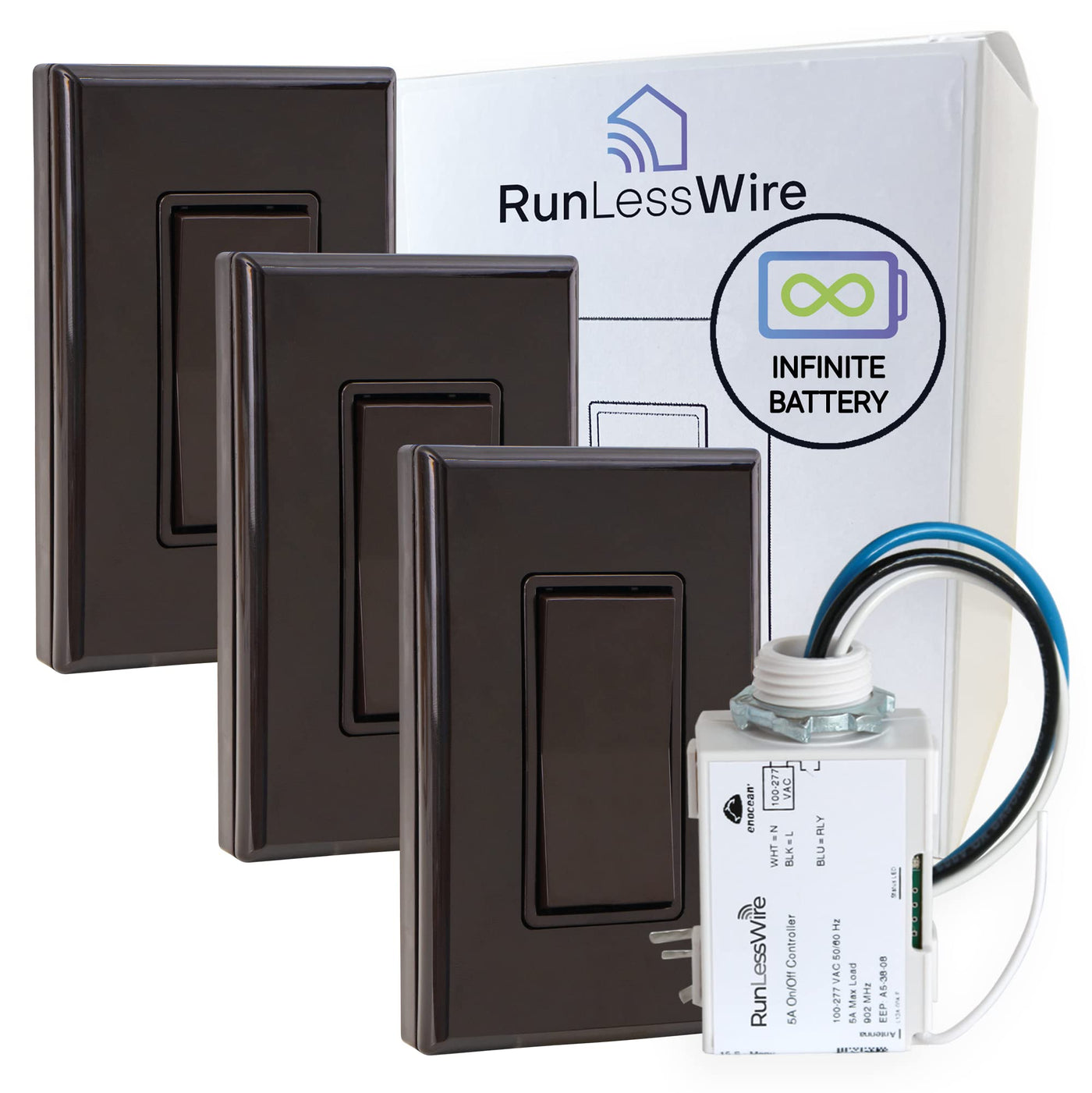 Looking to add or move a switch? RunLessWire has a stress-free, DIY solution to save you money, without having to pull up the drywall to run wires. This self-powered wireless switch sends a signal to the pre-programed receiver with the press of a button, and eliminates the need for wires, batteries, or internet access. Simply install the receiver to your fixture, then mount the switch anywhere and enjoy never having to change out the batteries, ever!