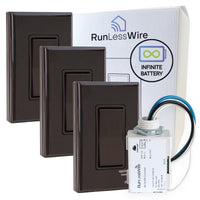 Q: How does the RunLessWire 4-Way Remote Light Switch Kit work?A: The RunLessWire 4-Way Remote Light Switch Kit operates wirelessly by using kinetic energy to power the switches. When you press a button on the switch, it sends a signal to the pre-programmed receiver, allowing you to control your lights without the need for wires or batteries.