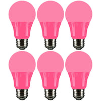Q: What color options are available for these light bulbs?A: The Sunlite A19 LED Colored Light Bulbs come in several vibrant colors, including Pink, Blue, Green, Red, Yellow, Orange, and Purple, allowing you to choose the perfect hue for your decor.