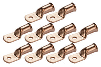 TEMCo bare copper battery cable ends are made from 99.91% pure copper (Lead and Mercury FREE), providing a high degree of conductivity for maximum current flow and designed with a heavy-duty construction for high temperature durability and enhanced mechanical strength. Terminal ends will not degrade in high temperature conditions. | Designed with a heavy-duty construction for high temperature durability and enhanced mechanical strength. Terminal ends will not degrade in high temperature conditions. | PRECISION FIT. High-tolerance dies are used in the molding process. Flared opening for easy wire insertion. | CLOSED END CONSTRUCTION keeps electrical components, batteries and cables safe and free from moisture, and prevents solder from leaking during installation. When paired with TEMCo adhesive heat shrink tubing will prevent corrosion by sealing out moisture. | Choose from a variety of wire sizes from 6 AWG to 4/0 AWG and stud sizes from