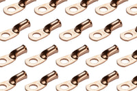 TEMCo bare copper battery cable ends are made from 99.91% pure copper (Lead and Mercury FREE), providing a high degree of conductivity for maximum current flow and designed with a heavy-duty construction for high temperature durability and enhanced mechanical strength. Terminal ends will not degrade in high temperature conditions. | Designed with a heavy-duty construction for high temperature durability and enhanced mechanical strength. Terminal ends will not degrade in high temperature conditions. | PRECISION FIT. High-tolerance dies are used in the molding process. Flared opening for easy wire insertion. | CLOSED END CONSTRUCTION keeps electrical components, batteries and cables safe and free from moisture, and prevents solder from leaking during installation. When paired with TEMCo adhesive heat shrink tubing will prevent corrosion by sealing out moisture. | Choose from a variety of wire sizes from 6 AWG to 4/0 AWG and stud sizes from