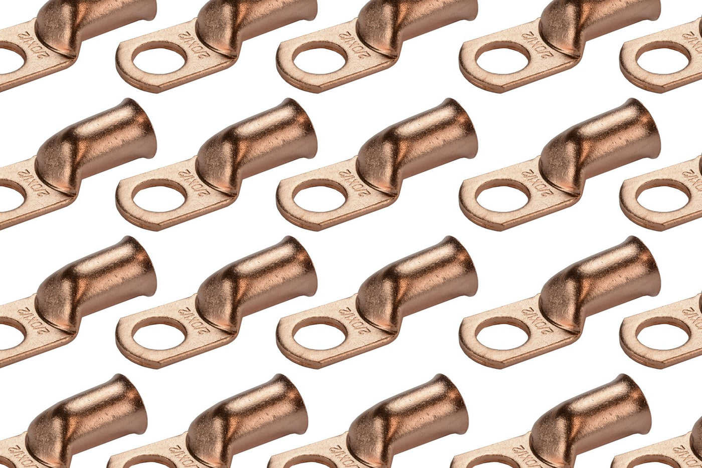 TEMCo bare copper battery cable ends are made from 99.91% pure copper (Lead and Mercury FREE), providing a high degree of conductivity for maximum current flow and designed with a heavy-duty construction for high temperature durability and enhanced mechanical strength. Terminal ends will not degrade in high temperature conditions. | Designed with a heavy-duty construction for high temperature durability and enhanced mechanical strength. Terminal ends will not degrade in high temperature conditions. | PRECISION FIT. High-tolerance dies are used in the molding process. Flared opening for easy wire insertion. | CLOSED END CONSTRUCTION keeps electrical components, batteries and cables safe and free from moisture, and prevents solder from leaking during installation. When paired with TEMCo adhesive heat shrink tubing will prevent corrosion by sealing out moisture. | Choose from a variety of wire sizes from 6 AWG to 4/0 AWG and stud sizes from