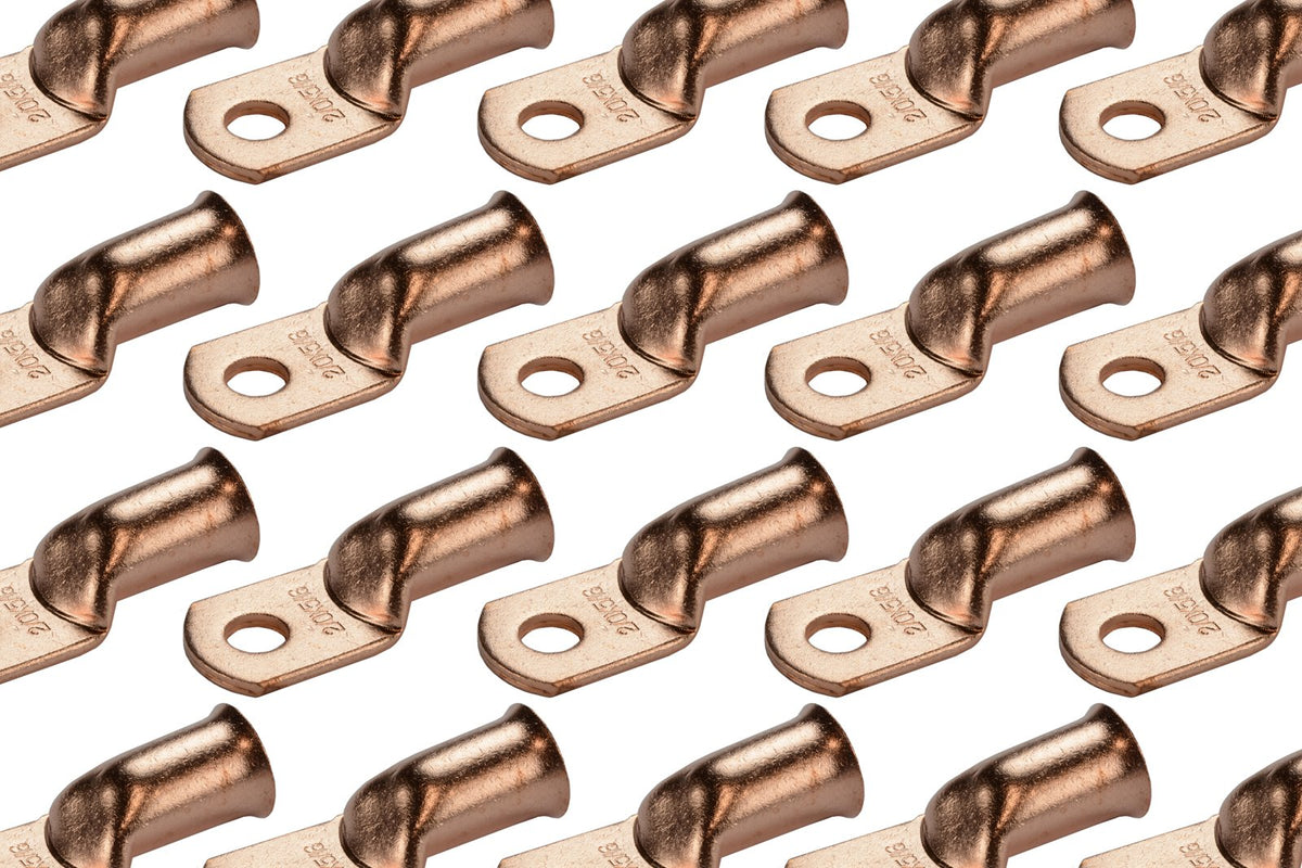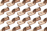 TEMCo bare copper battery cable ends are made from 99.91% pure copper (Lead and Mercury FREE), providing a high degree of conductivity for maximum current flow and designed with a heavy-duty construction for high temperature durability and enhanced mechanical strength. Terminal ends will not degrade in high temperature conditions. | Designed with a heavy-duty construction for high temperature durability and enhanced mechanical strength. Terminal ends will not degrade in high temperature conditions. | PRECISION FIT. High-tolerance dies are used in the molding process. Flared opening for easy wire insertion. | CLOSED END CONSTRUCTION keeps electrical components, batteries and cables safe and free from moisture, and prevents solder from leaking during installation. When paired with TEMCo adhesive heat shrink tubing will prevent corrosion by sealing out moisture. | Choose from a variety of wire sizes from 6 AWG to 4/0 AWG and stud sizes from