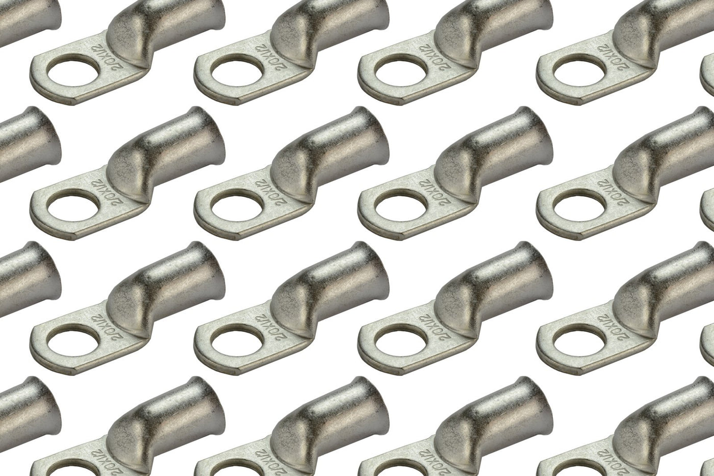 TEMCo Tinned Copper - marine grade battery cable ends are made from 99.91% annealed tinned pure copper (Lead and Mercury FREE), providing a high degree of conductivity for maximum current flow and designed with a heavy-duty construction for high temperature durability and enhanced mechanical strength. Terminal ends will not degrade in high temperature conditions. | PRECISION FIT. High-tolerance dies are used in the molding process. Flared opening for easy wire insertion. | CLOSED END CONSTRUCTION keeps electrical components, batteries and cables safe and free from moisture, and prevents solder from leaking during installation. When paired with TEMCo adhesive heat shrink tubing will prevent corrosion by sealing out moisture. | Tinned copper wire lugs are corrosion free; (Salt Spray certified to JISZ2371) ideal for marine, automotive or outdoor use. Special matte tin plating make these lugs easy to solder Designed for durability and rated for up to 600V DC when properly installed. | Choose from a variety of wire sizes from 6 AWG to 4/0 AWG and stud sizes from