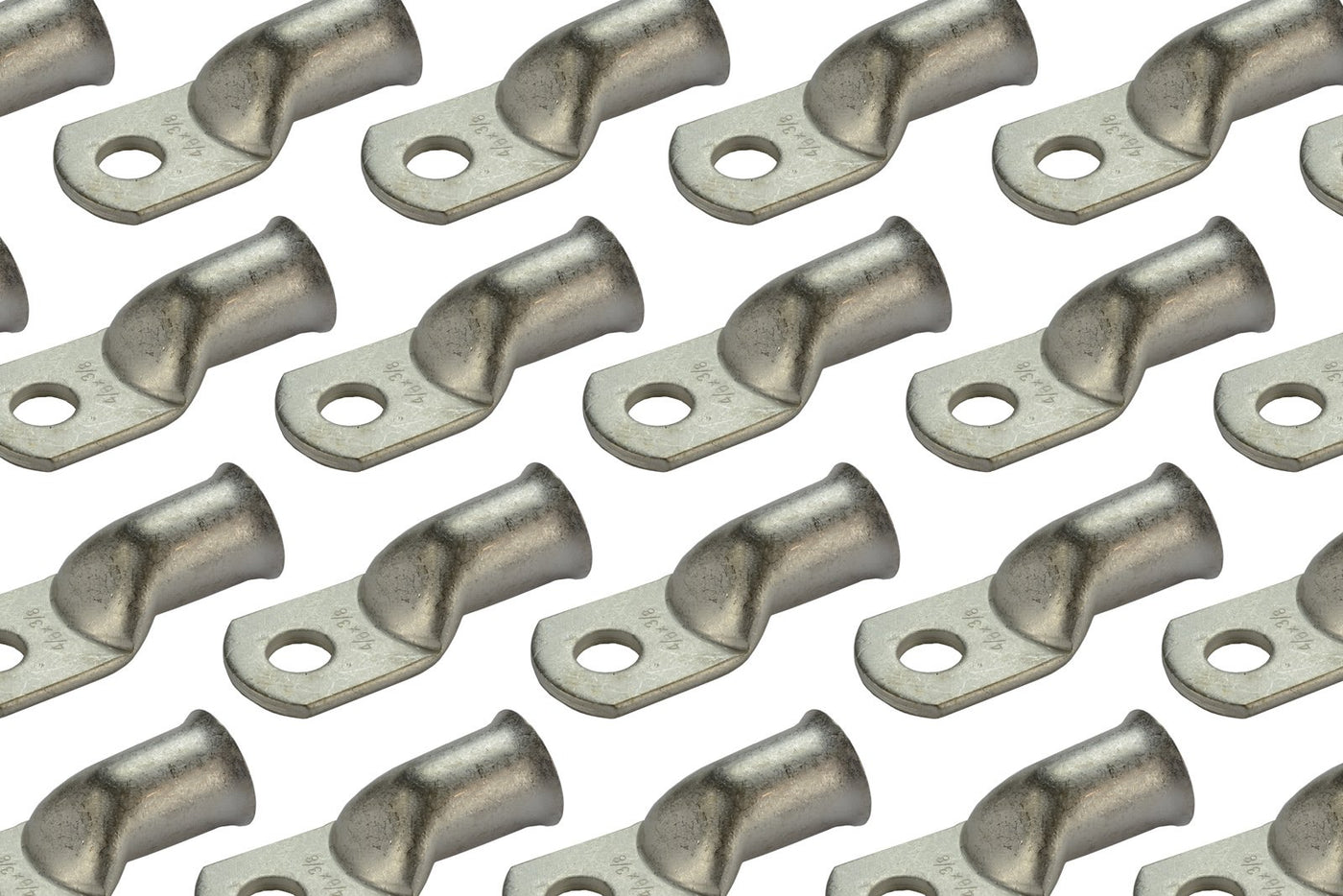 TEMCo Tinned Copper - marine grade battery cable ends are made from 99.91% annealed tinned pure copper (Lead and Mercury FREE), providing a high degree of conductivity for maximum current flow and designed with a heavy-duty construction for high temperature durability and enhanced mechanical strength. Terminal ends will not degrade in high temperature conditions. | PRECISION FIT. High-tolerance dies are used in the molding process. Flared opening for easy wire insertion. | CLOSED END CONSTRUCTION keeps electrical components, batteries and cables safe and free from moisture, and prevents solder from leaking during installation. When paired with TEMCo adhesive heat shrink tubing will prevent corrosion by sealing out moisture. | Tinned copper wire lugs are corrosion free; (Salt Spray certified to JISZ2371) ideal for marine, automotive or outdoor use. Special matte tin plating make these lugs easy to solder Designed for durability and rated for up to 600V DC when properly installed. | Choose from a variety of wire sizes from 6 AWG to 4/0 AWG and stud sizes from
