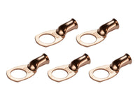 TEMCo bare copper battery cable ends are made from 99.91% pure copper (Lead and Mercury FREE), providing a high degree of conductivity for maximum current flow and designed with a heavy-duty construction for high temperature durability and enhanced mechanical strength. Terminal ends will not degrade in high temperature conditions. | Designed with a heavy-duty construction for high temperature durability and enhanced mechanical strength. Terminal ends will not degrade in high temperature conditions. | PRECISION FIT. High-tolerance dies are used in the molding process. Flared opening for easy wire insertion. | CLOSED END CONSTRUCTION keeps electrical components, batteries and cables safe and free from moisture, and prevents solder from leaking during installation. When paired with TEMCo adhesive heat shrink tubing will prevent corrosion by sealing out moisture. | Choose from a variety of wire sizes from 6 AWG to 4/0 AWG and stud sizes from