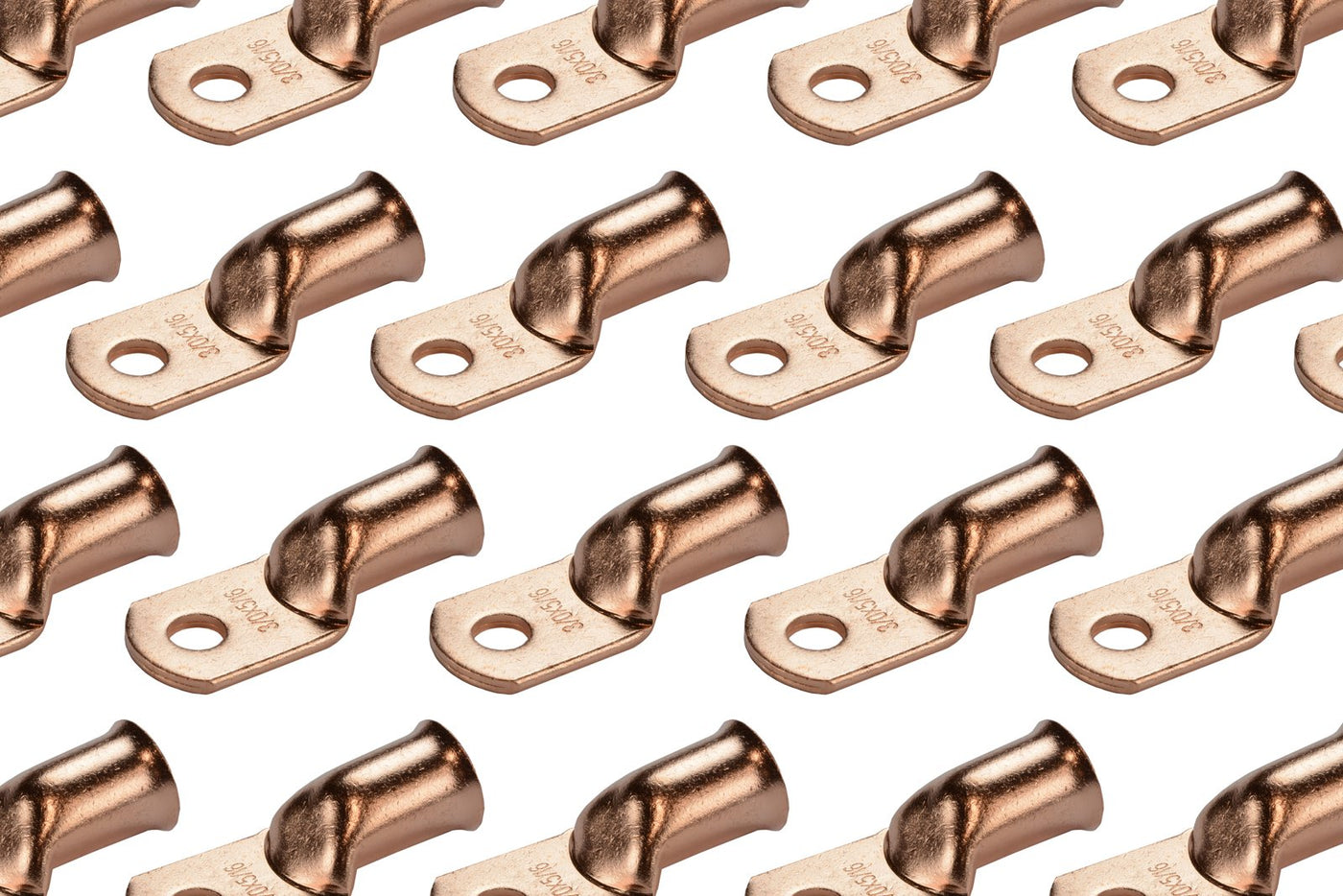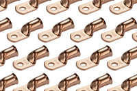 TEMCo bare copper battery cable ends are made from 99.91% pure copper (Lead and Mercury FREE), providing a high degree of conductivity for maximum current flow and designed with a heavy-duty construction for high temperature durability and enhanced mechanical strength. Terminal ends will not degrade in high temperature conditions. | Designed with a heavy-duty construction for high temperature durability and enhanced mechanical strength. Terminal ends will not degrade in high temperature conditions. | PRECISION FIT. High-tolerance dies are used in the molding process. Flared opening for easy wire insertion. | CLOSED END CONSTRUCTION keeps electrical components, batteries and cables safe and free from moisture, and prevents solder from leaking during installation. When paired with TEMCo adhesive heat shrink tubing will prevent corrosion by sealing out moisture. | Choose from a variety of wire sizes from 6 AWG to 4/0 AWG and stud sizes from
