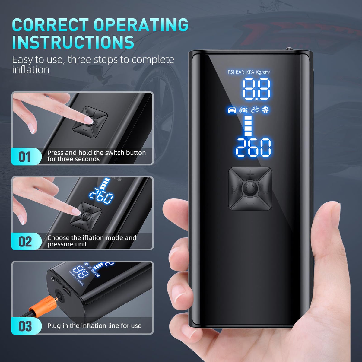 Tire Inflator Portable Air Compressor, 150Psi Portable Air Pump For Car Tires With 25000Mah Battery, 2X Faster Inflation Electric Air Pump With Digital Pressure Gauge For Car, Bike, Motorcycle, Ball