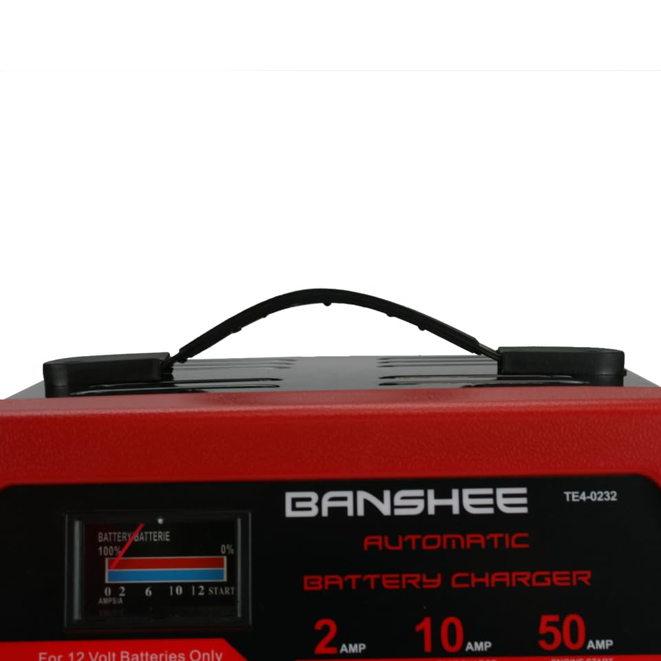 Titan Brand 50/10/2 Amp Automatic Starter/Charger Replacement for SE-1052 Key Specifications/Special Features: With ammeter indicates charging current Battery type switches to set proper charge rate for SLI or deep cycled batteries Charge rate switch to set maximum charging current: 2A trickle charge 10A fast charge: for everyday charging needs 50A engine start: for emergency starting 2 LED indicators: full charge and power on Suitable for 12V Lead-acid battery 2 YEAR WARRANTY