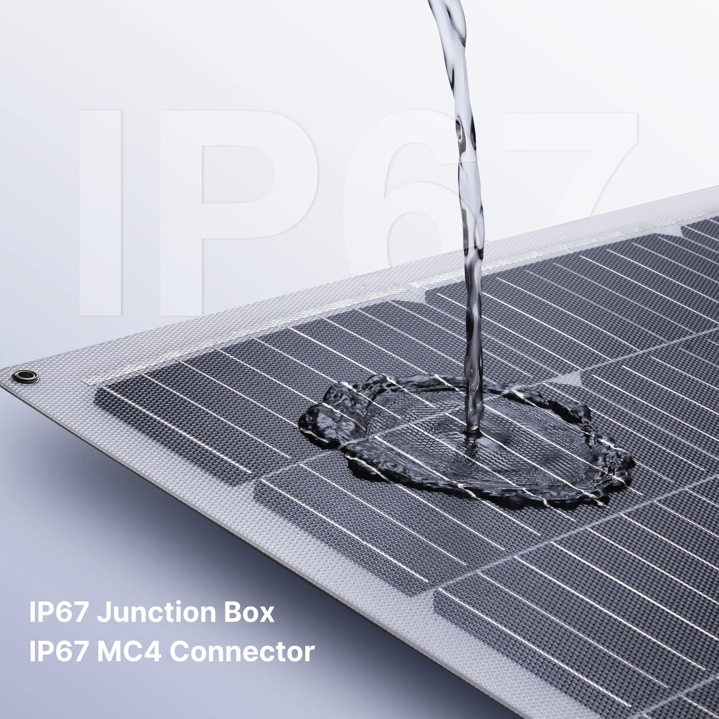 Q: Is the solar panel waterproof and suitable for outdoor use?A: Yes, the Topunive Flexible Solar Panel features an IP67-rated junction box that protects against water splashes and dust, making it durable and suitable for outdoor installations.