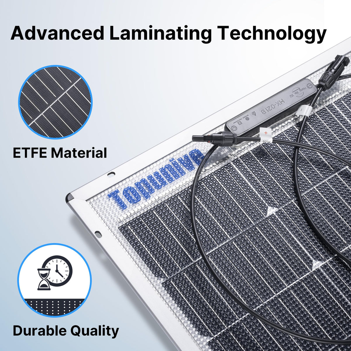 Topunive Bifacial 100W 12V Solar Panel 9Bb Monocrystalline Cell 12 Volt For Marine Rv Trailer Boat Cabin Van Car Uneven Surfaces 12V Battery Charge