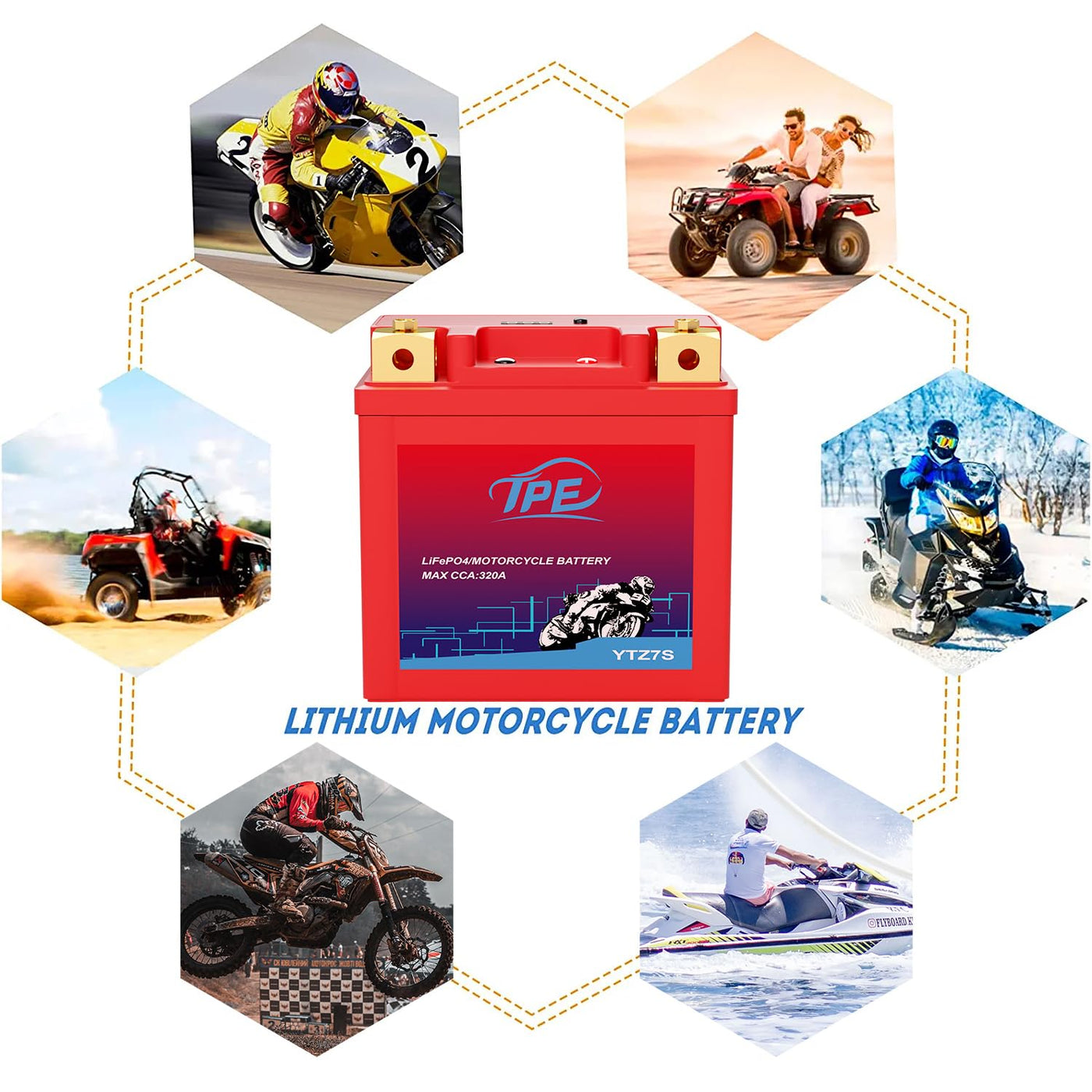 Tpe Lithium Motorcycle Battery Ytz7S-Bs 12V 4Ah 320Cca Powersport Battery For Atv, Jet Ski, Scooter, Pwc And More
