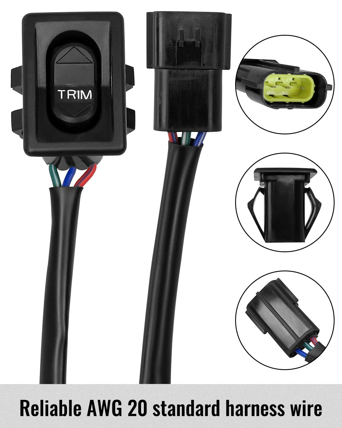 Compatible Model: The tilt and trim switch fit for Mercury 25-400HP 1999-Up 1999 2000 2001 2002 2003 2004 2005 2006 2007 2008 2009 2010 2011 2012 2013 2014 2015 2016 2017 2018 2019 2020 2021 2022, please confirm your model and year in advance to ensure that it is applicable Replacement Part Number: The trim and tilt switch can replace 87-8M0042300 87-896620001 87-8569901, Please confirm that your part number is consistent with this in advance to ensure that it is applicable High Quality Material: The boat trim switch is made of high quality material, which is firm and durable, with excellent performance, safe and reliable quality, You can use it with confidence Easy to Install: The tilt switch adopts plug and play mode and adopts AWG 20 standard harness, which is simple and convenient to install and can be completed in a few minutes Package Contain: 1 x Tilt trim switch, If you have problems during installation or use, we have technical support