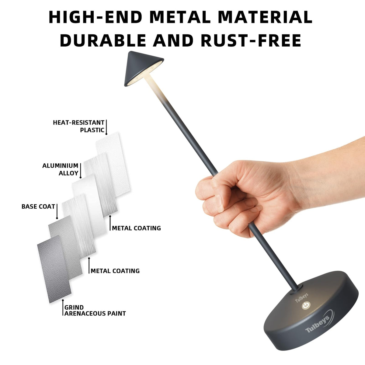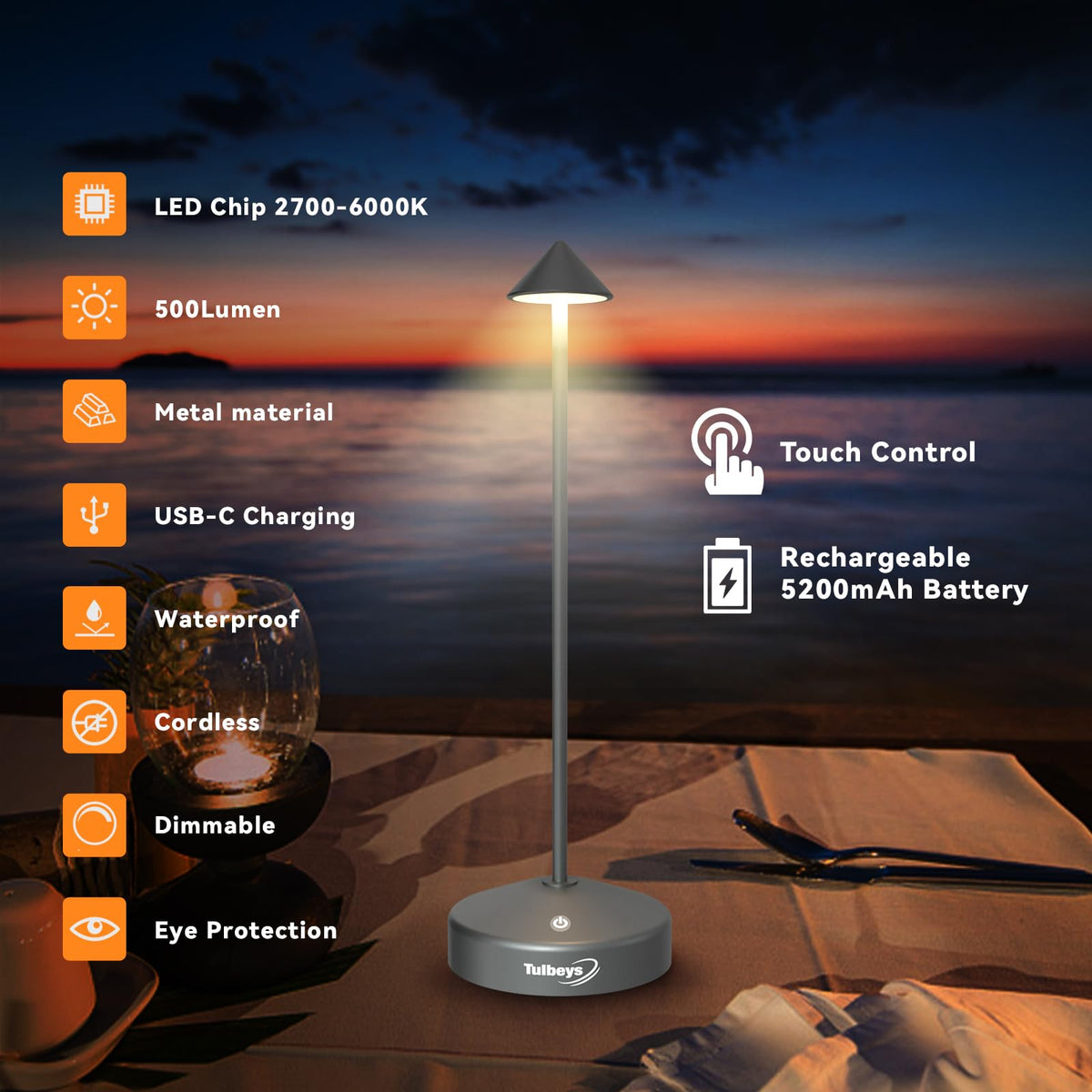 Introducing The Tulbeys Cordless Table Lamp, The Perfect Addition To Your Modern Living Room Or Outdoor Space. This Rechargeable Lamp Combines Style And Convenience, Allowing You To Bring Light Wherever You Go. With Its Sleek And Contemporary Design, This Table Lamp Is A Must-Have For Any Modern Home. Whether You Place It On Your Living Room Side Table Or Use It As An Outdoor Table Lamp During A Picnic, It Will Surely Impress Your Guests With Its Elegant Presence. The Tulbeys Cordless Table Lamp Is Powered By A Rechargeable Battery, Eliminating The Need For Cords And Allowing For Easy Portability. You Can Take It From Room To Room Or Even Bring It On Your Outdoor Adventures Without Worrying About Finding An Outlet. It'S The Ultimate Cordless Lamp For Those Who Value Freedom And Flexibility. Featuring A Touch-Sensitive Control, This Table Lamp Offers Adjustable Brightness Levels To Suit Your Mood And Needs. From A Soft, Warm Glow For A Cozy Evening To A Bright Light For Reading Or Working, This Lamp Has Got You Covered. The Dimmable Led Technology Ensures Energy Efficiency While Providing Ample Lighting. Crafted With High-Quality Aluminum, This Cordless Table Lamp Is Not Only Durable But Also Waterproof, Making It Suitable For Both Indoor And Outdoor Use. Whether You Want To Create A Relaxing Ambiance On Your Patio Or Need A Reliable Light Source During A Camping Trip, This Lamp Is Up For The Task. Designed With Adults In Mind, The Tulbeys Cordless Table Lamp Is Perfect For Anyone Seeking A Versatile Lighting Solution. Its Sleek Grey Battery Cordless Design Adds A Touch Of Sophistication To Any Space, Making It A Stylish Addition To Your Home Decor. Don'T Compromise On Style Or Functionality. Choose The Tulbeys Cordless Table Lamp And Enjoy The Freedom Of Wireless Lighting. Get Yours Today And Experience The Convenience And Elegance It Brings To Your Living Room, Outdoor Gatherings, Or Any Other Space You Desire.