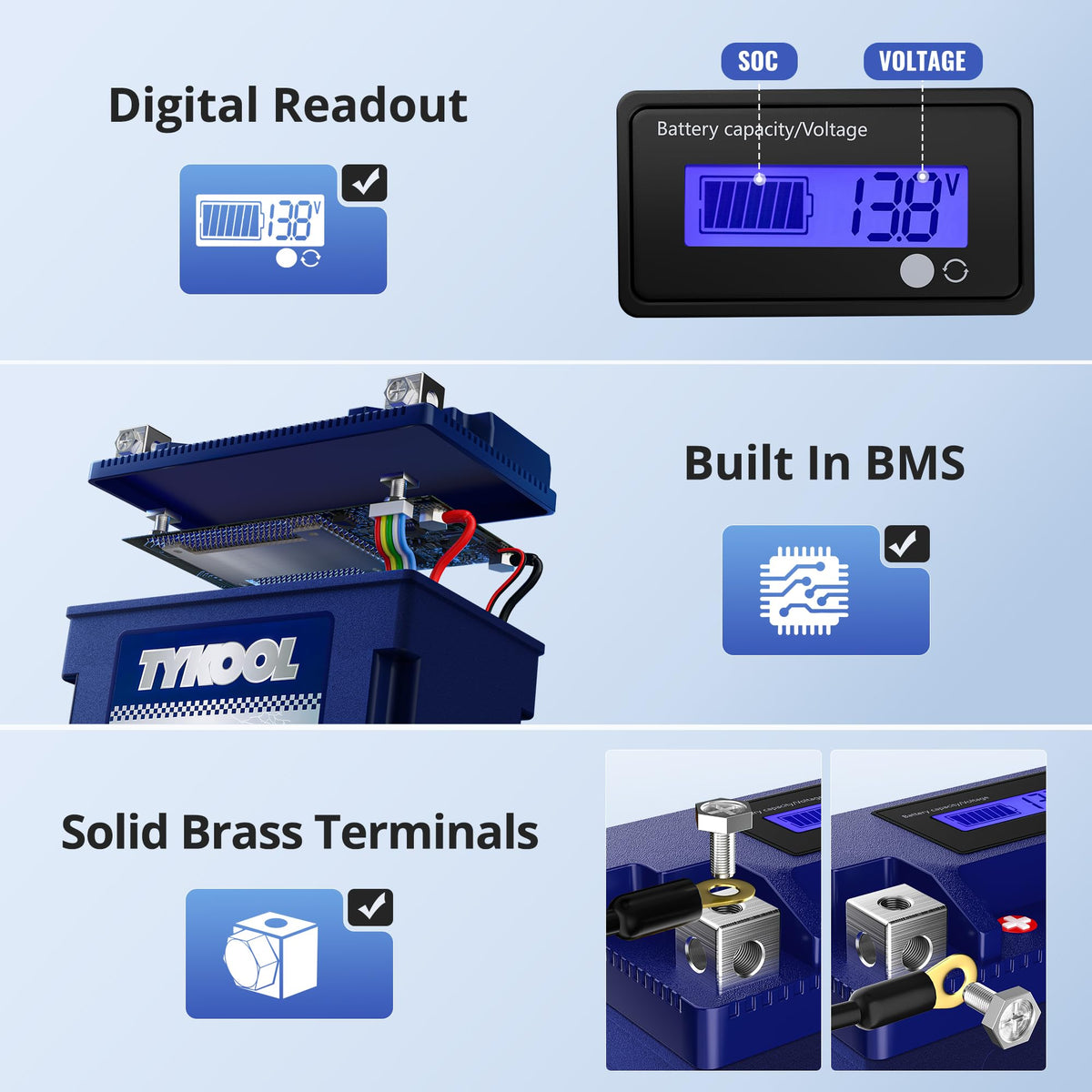 Upgrade Your Ride with the YTZ14S Lithium-Ion Battery The YTZ14S Lithium-Ion Battery is the ultimate power solution for your motorcycle. Designed to replace YTZ14S and YTZ12S, its compatible with BMW, Honda, KTM, Suzuki, Yamaha, and more. High Performance: Delivers over 400-amps of starting power and 4000+ cycles-3X more power and 5X longer life than lead-acid batteries. Smart Protection: Built-in BMS safeguards against overcharge, over-discharge, and extreme temperatures. Real-Time Display: Monitor voltage and capacity with the digital display, ensuring youre always in control. Fast Charging: Recharges 5X faster and arrives fully charged-ready to install and ride. Lightweight & Compact: Weighing just 2.43 lbs, its 10X more efficient and perfect for performance bikes. Say goodbye to maintenance with this no-acid, no-water, no-hassle lithium-ion battery. Whether youre on the highway or off-road, the YTZ14S delivers reliability and power for every ride.