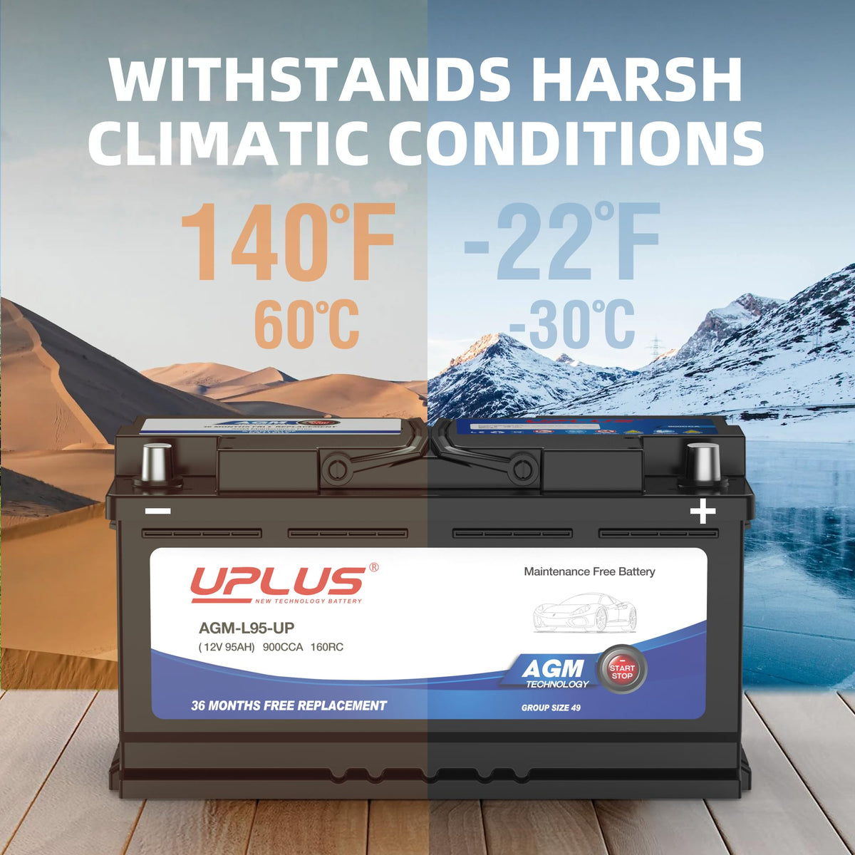 Uplus Bci Group 49 Car Battery, Agm-L95-Up Maintenance Free 12V 95Ah Premium Agm Batteries H8 L5 Automotive Battery, 900Cca, 160