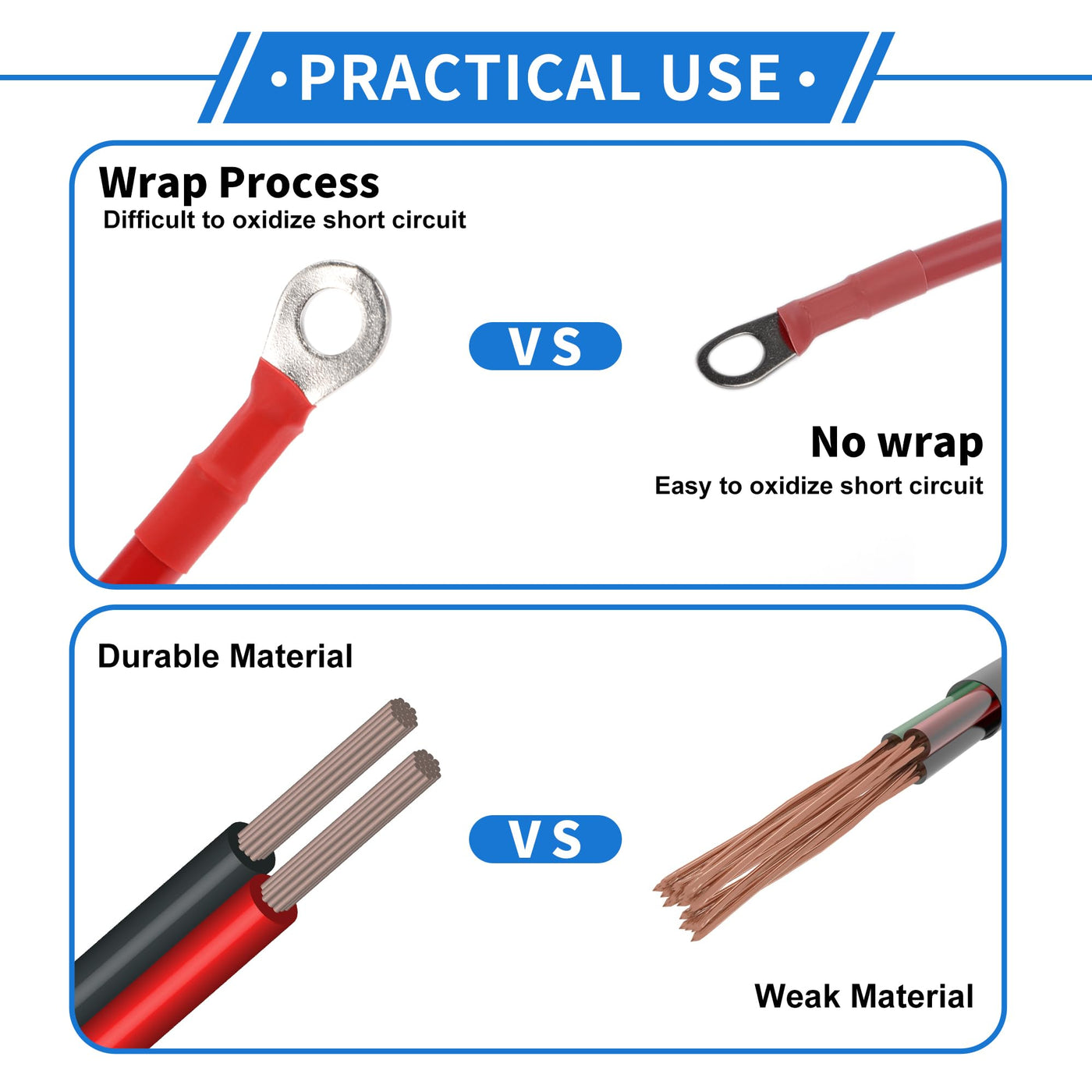 VekAuto 1 Pc Battery Inverter Cable 6 AWG Gauge 3FT 3/8'' Lug 5/16'' Lug Battery Cable Universal for Car Vehicle Boat RV Solar T