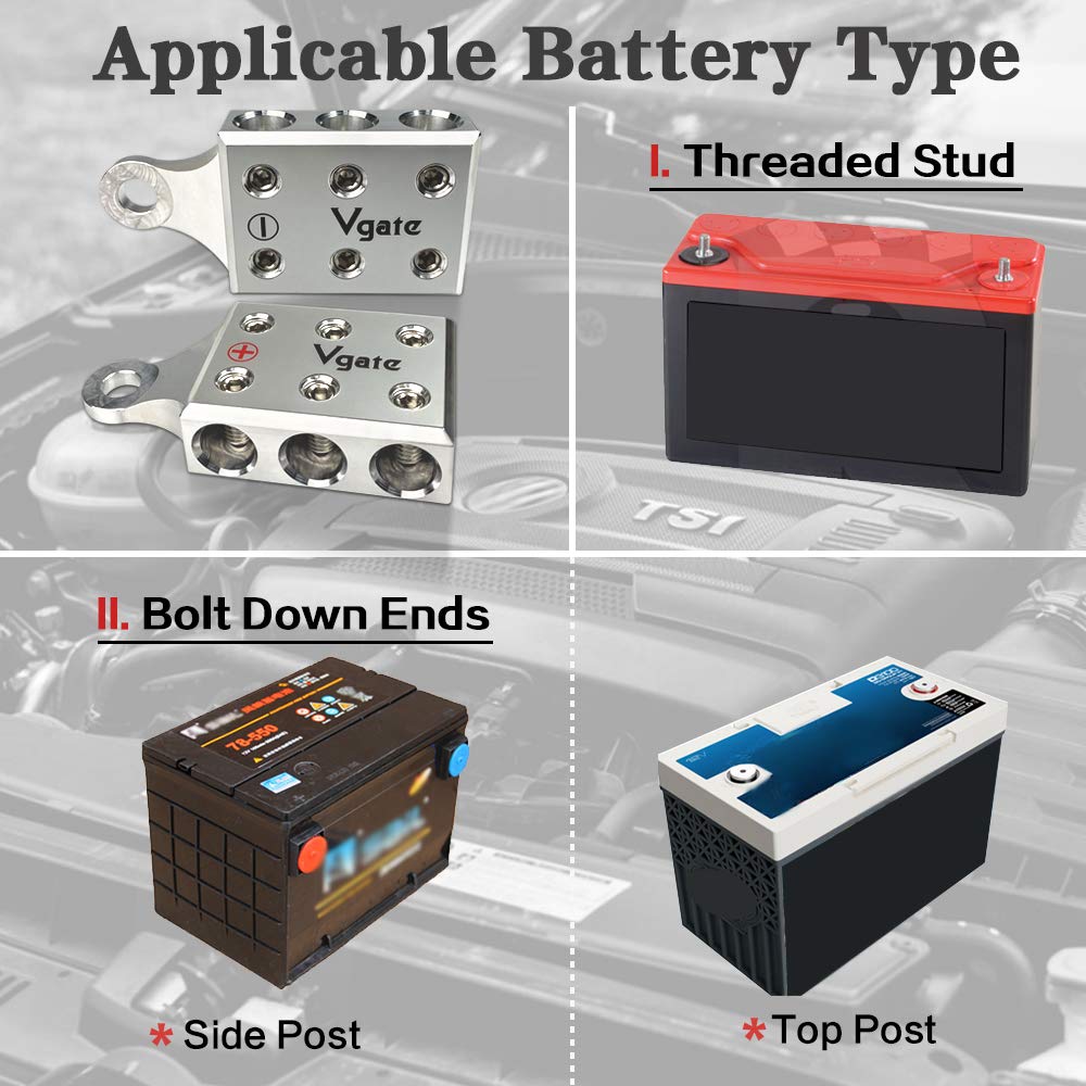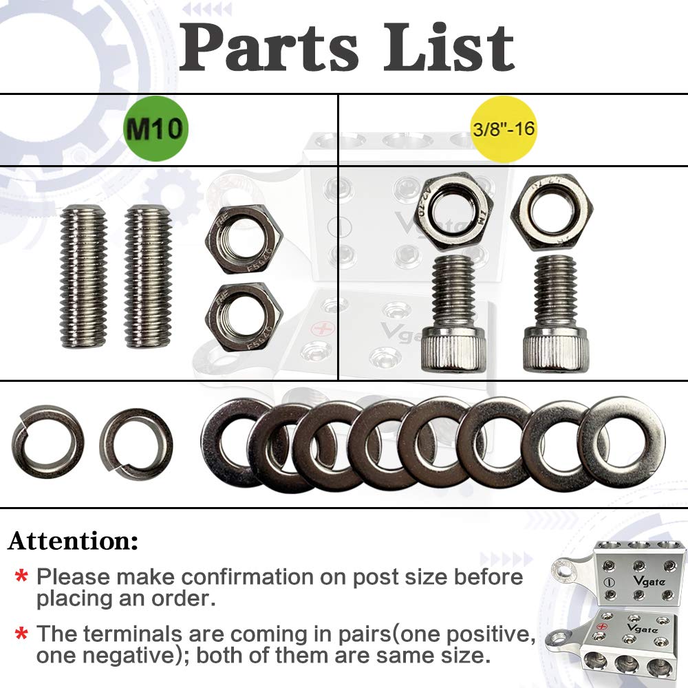 Vgate 6X1/0 Awg Gauge Post Battery Terminals, For Lithium Or Agm Lead Acid Battery With Bolt Down Ends Or Threaded Studs, M10 Or